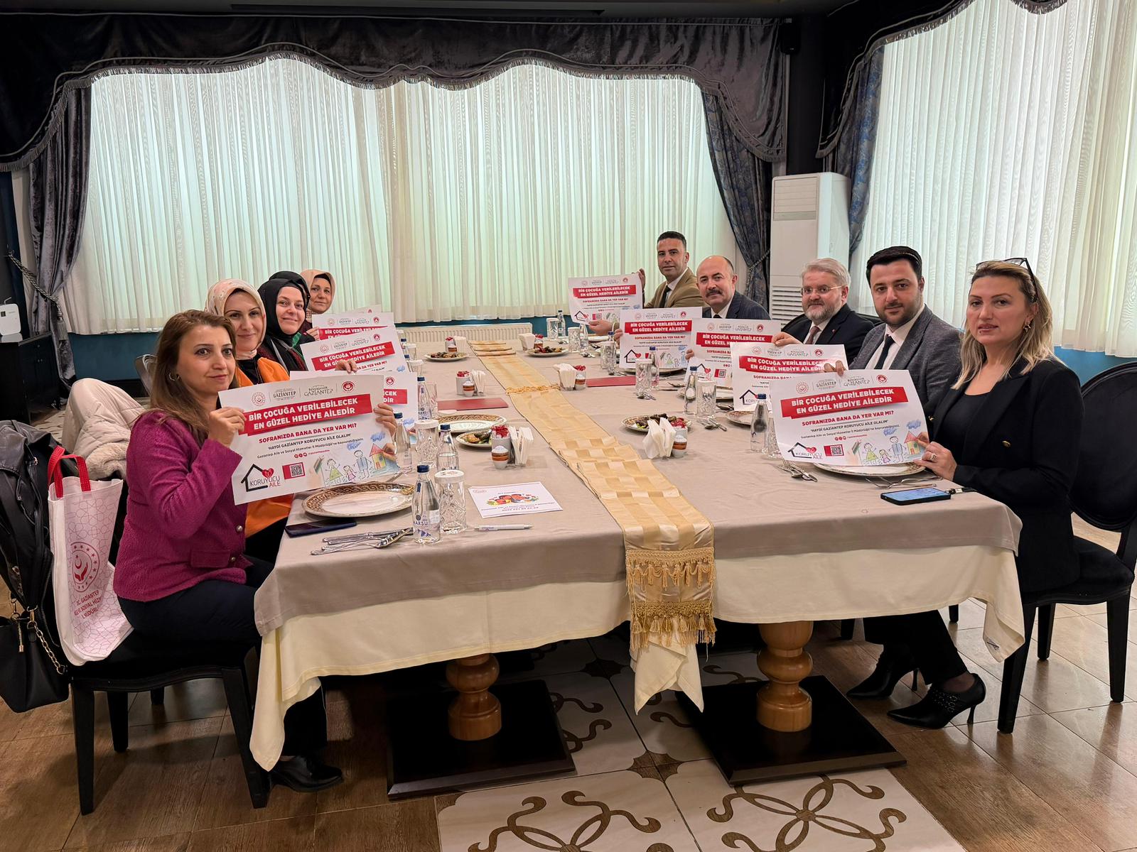 Program, Vali Yardımcımız Sayın Bülent Uygur’un başkanlığında; Gaziantep Valimiz Sayın Kemal Çeber’in kıymetli eşi Sayın Neslihan Çeber Hanımefendi, Büyükşehir Belediye Başkan Vekili Sayın Zehra Ünal, İl Müftümüz Sayın Mustafa Soykök ve İl Müdürümüz Sayın Umut Zeybek’in teşrifleriyle gerçekleştirildi. Büyükşehir Belediyemiz iş birliğinde hazırlanan koruyucu aile temalı özel yemek servis altlıkları, şehrin en yoğun kafe ve restoranlarına ulaştırılmaya başlandı.