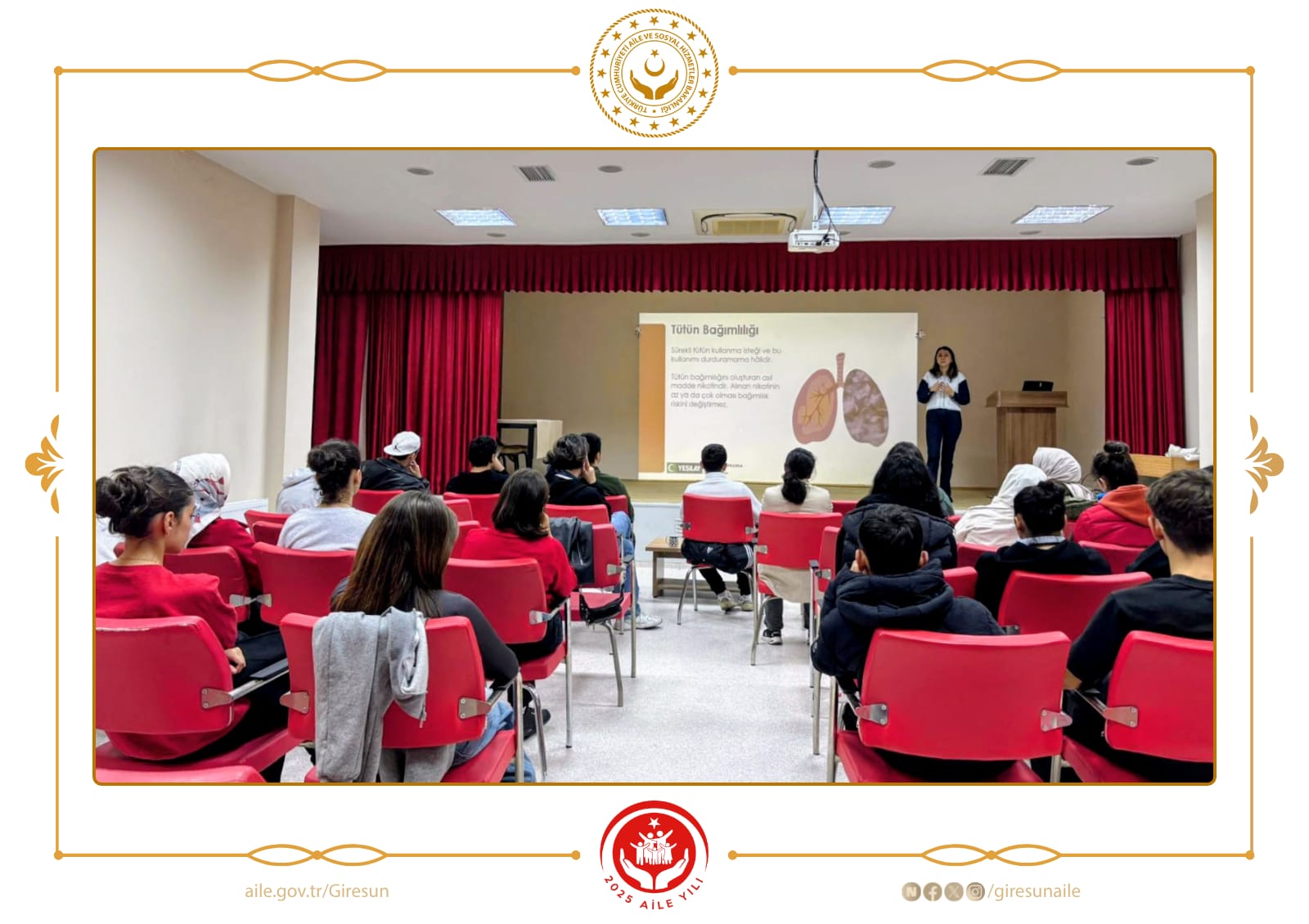 Giresun Aile ve Sosyal Hizmetler İl Müdürlüğü’ne bağlı Giresun Sosyal Hizmet Merkezi Müdürlüğü tarafından, Türkiye Bağımlılıkla Mücadele Programı kapsamında eğitimler düzenlendi.