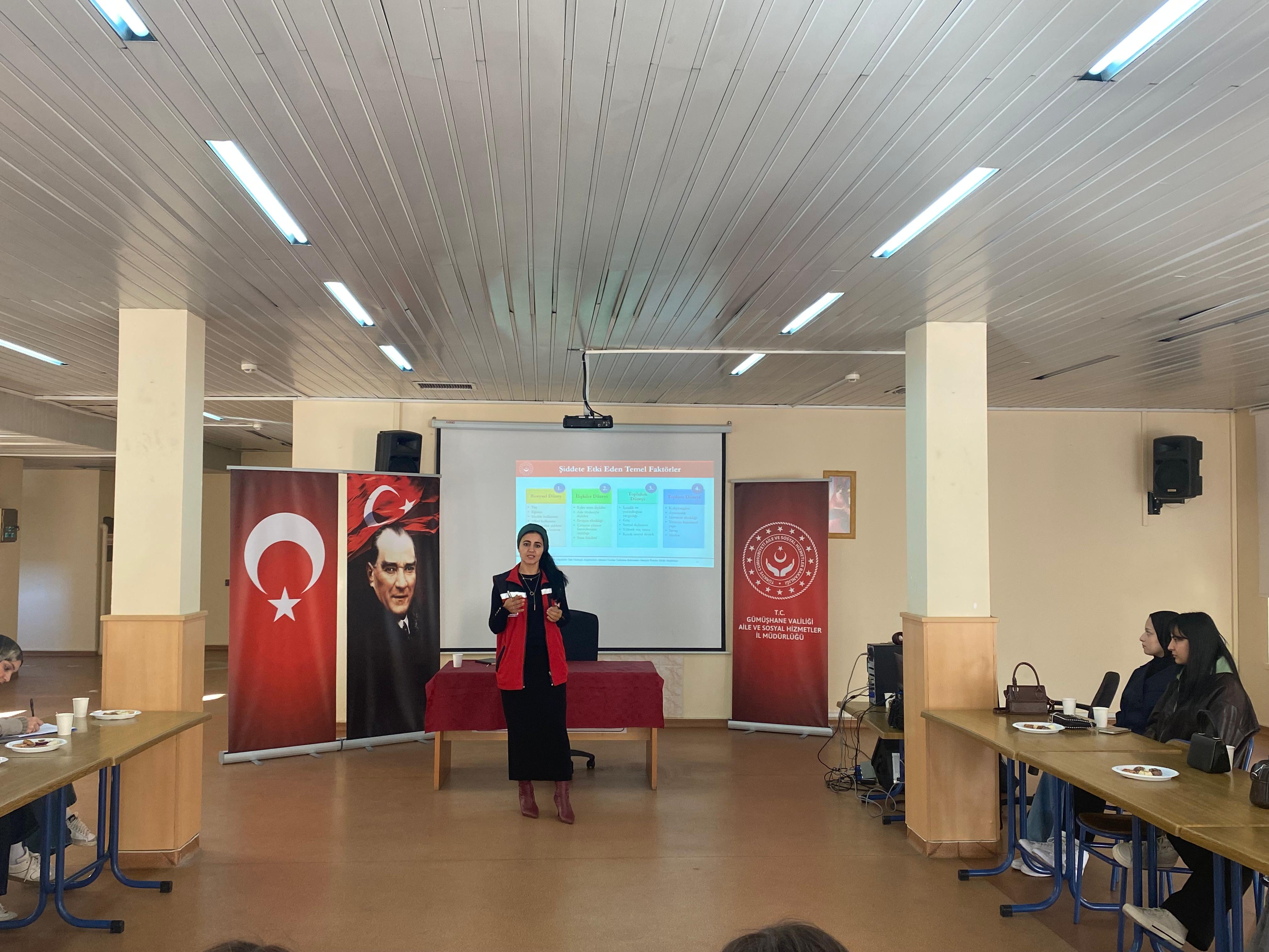 kadına yönelik şiddetin toplumsal dinamikleri, kurumlar arası iş birliği, müdahale süreçleri ve sosyal hizmet mekanizmalarının işleyişine ilişkin kapsamlı bir bilgi ve tecrübe paylaşımında bulundu.