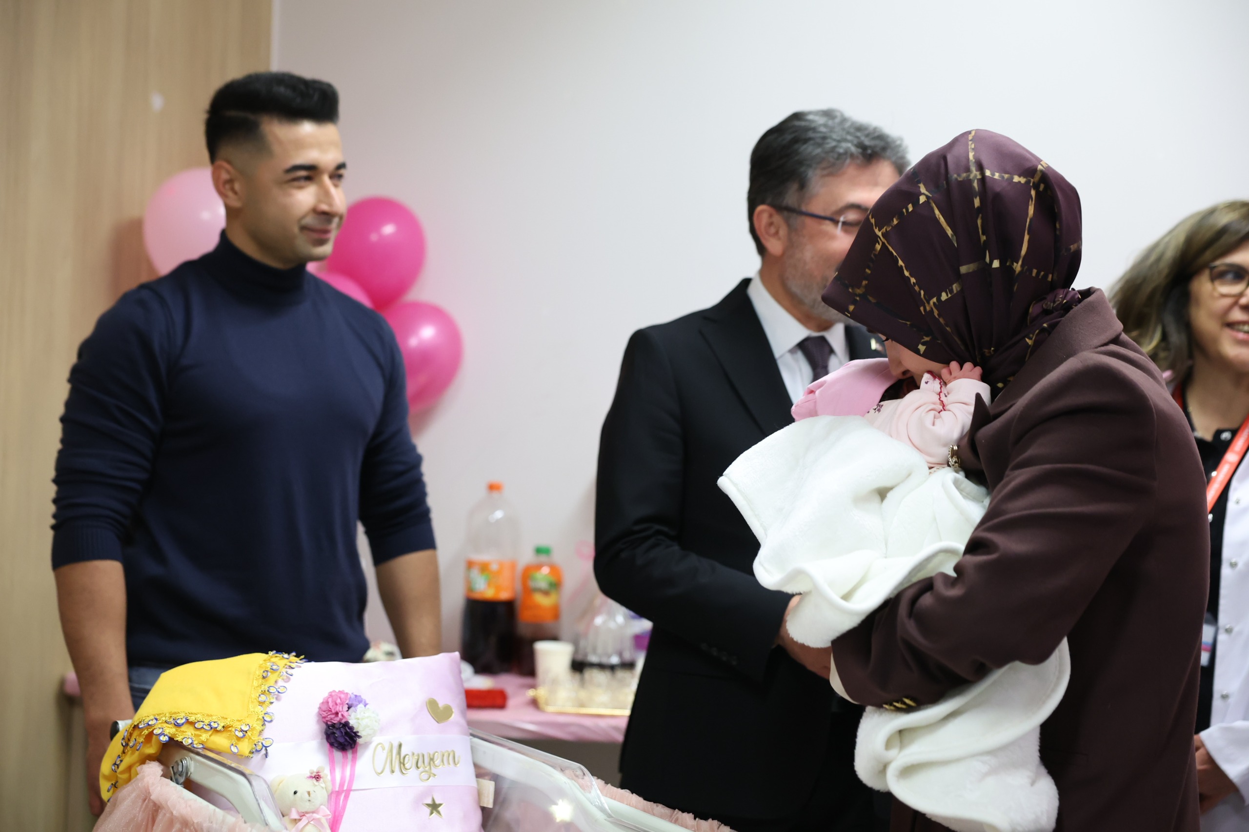 Bakan Göktaş ve Bakan Yumaklı ilk olarak üçüncü bebekleri dünyaya gelen Meryem-Yasin çiftinin bebekleri Asel’i ziyaret ederek, sağlıkla büyümesi temennisinde bulundu.