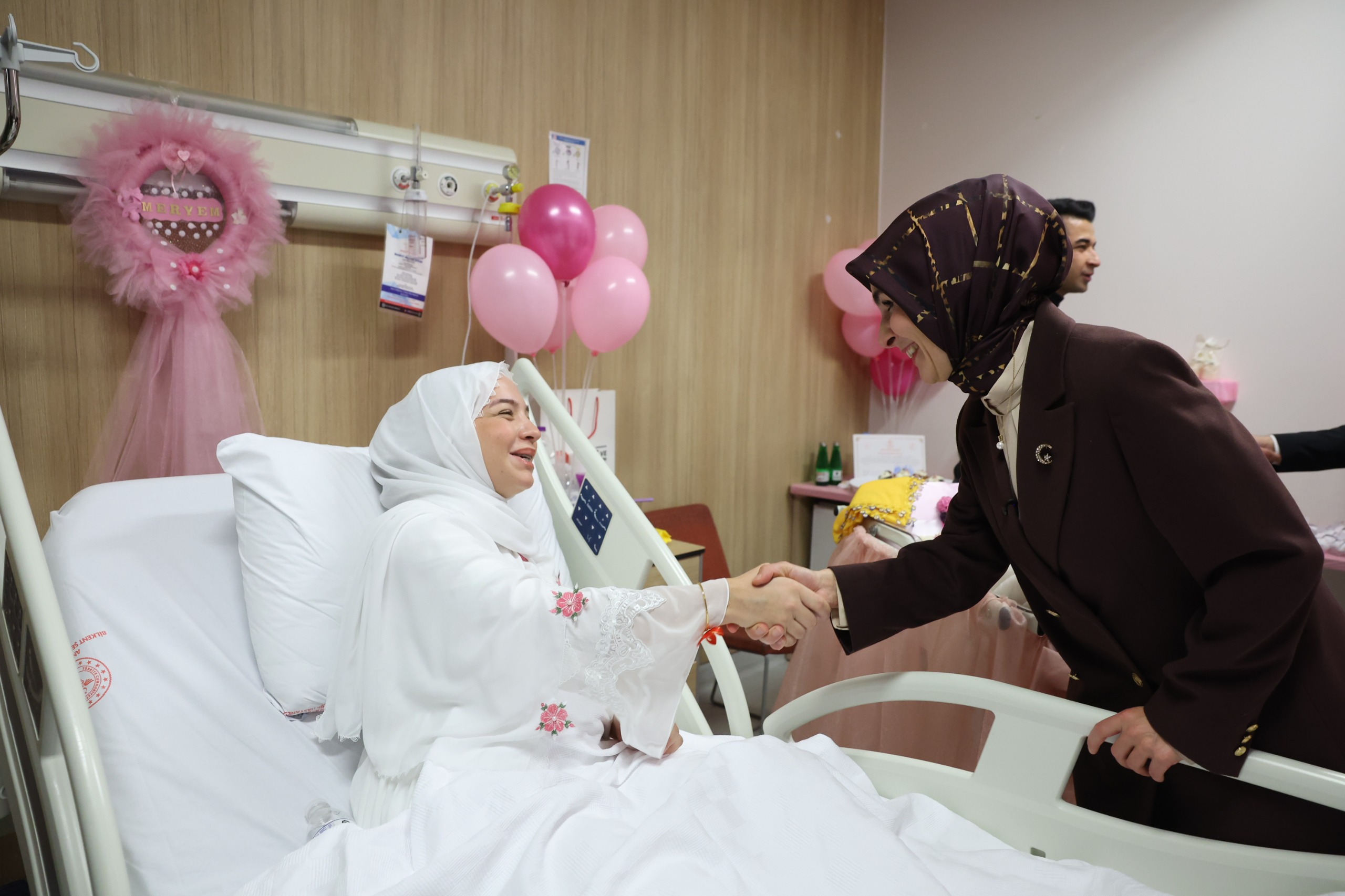 Daha sonra ilk bebeklerini kucaklarına alan Asiye-Abdulkadir çiftinin bebekleri Meryem ile üçüncü bebekleri dünyaya gelen Şeyma-Emre çiftinin bebekleri Alpay Aslan'ı ziyaret eden bakanlar Göktaş ve Yumaklı bebekleri kucaklarına alarak yakından ilgilendi.