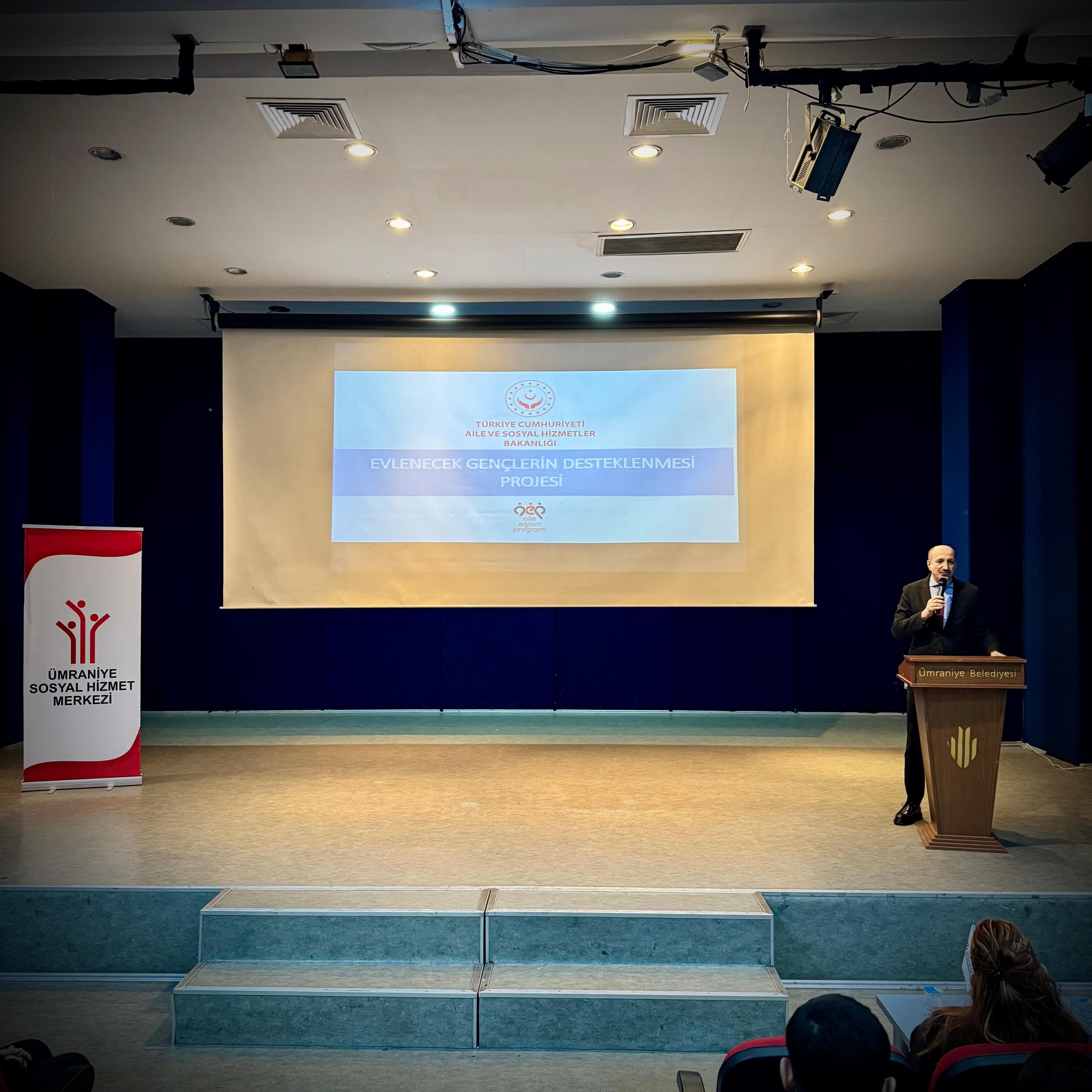 Ümraniye Sosyal Hizmet Merkezi tarafından 'Evlenecek Gençlerin Desteklenmesi Projesi' kapsamında evlilik öncesi eğitimimiz 90 evlenecek çiftimizin katılımıyla gerçekleştirildi.