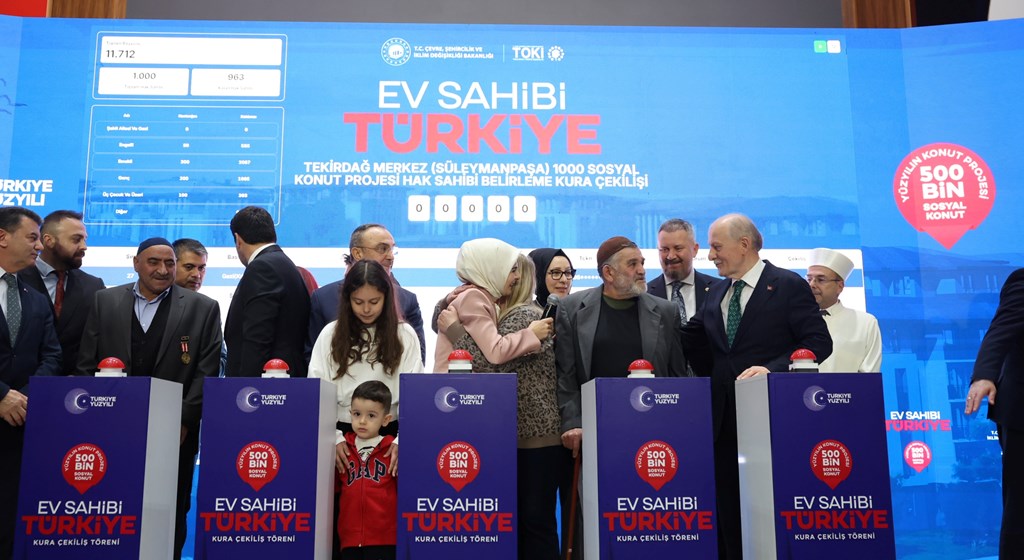 "Bugün Tekirdağ'ımızda 6 bin 865 konutun hak sahiplerini belirleyeceğiz. Yüzyılın Konut Projesi engelli vatandaşlarımız ve şehit yakınlarımız için ayrılan özel kontenjanla hiç kimseyi geride bırakmayan yaklaşımın bir yansımasıdır. Çünkü konut, sadece bir bina değildir. Şehirlerin nitelikli yaşam alanlarına kavuşması, mahallenin huzuru, ailenin birliğidir. Bu anlamda hayata geçirilen her bir sosyal konut projesi 'aile dostu ekosistem' anlayışımızın kıymetli bir parçasıdır."