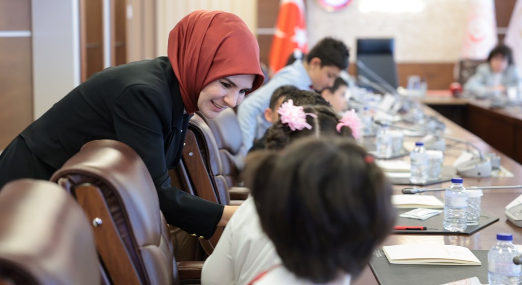 Aile ve Sosyal Hizmetler Bakanımız Mahinur Özdemir Göktaş, 23 Nisan Ulusal Egemenlik ve Çocuk Bayramı dolayısıyla çocukları bakanlıkta ağırladı