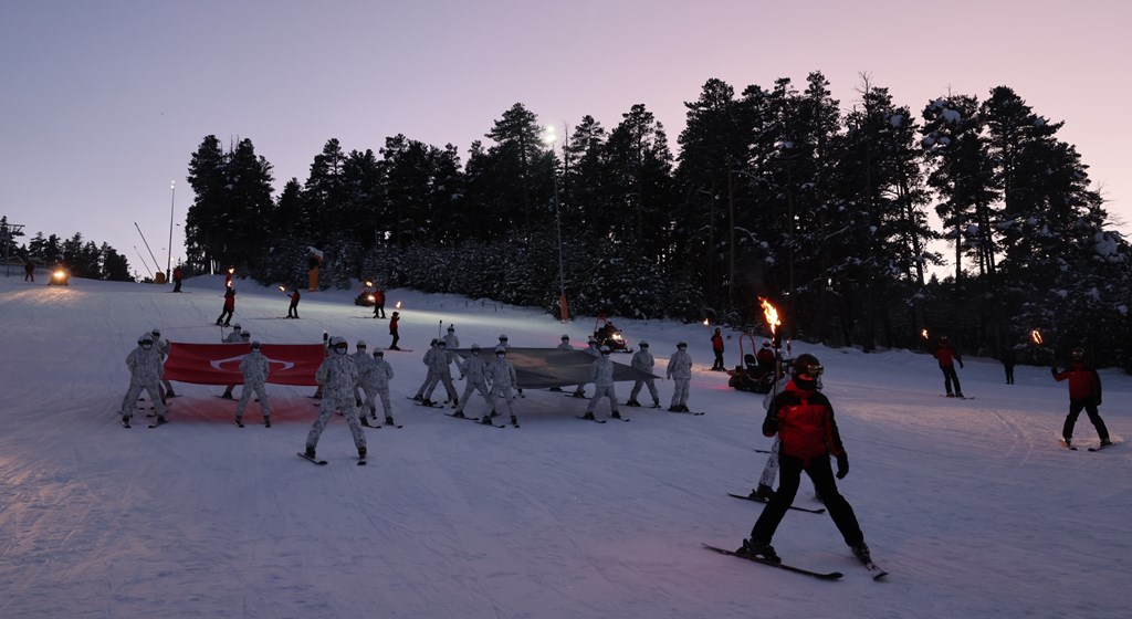 Şehitler anısına (JAK) timleri ve komandolar meşaleli kayak gösterisi yaptı, meşaleli yürüyüş düzenlendi