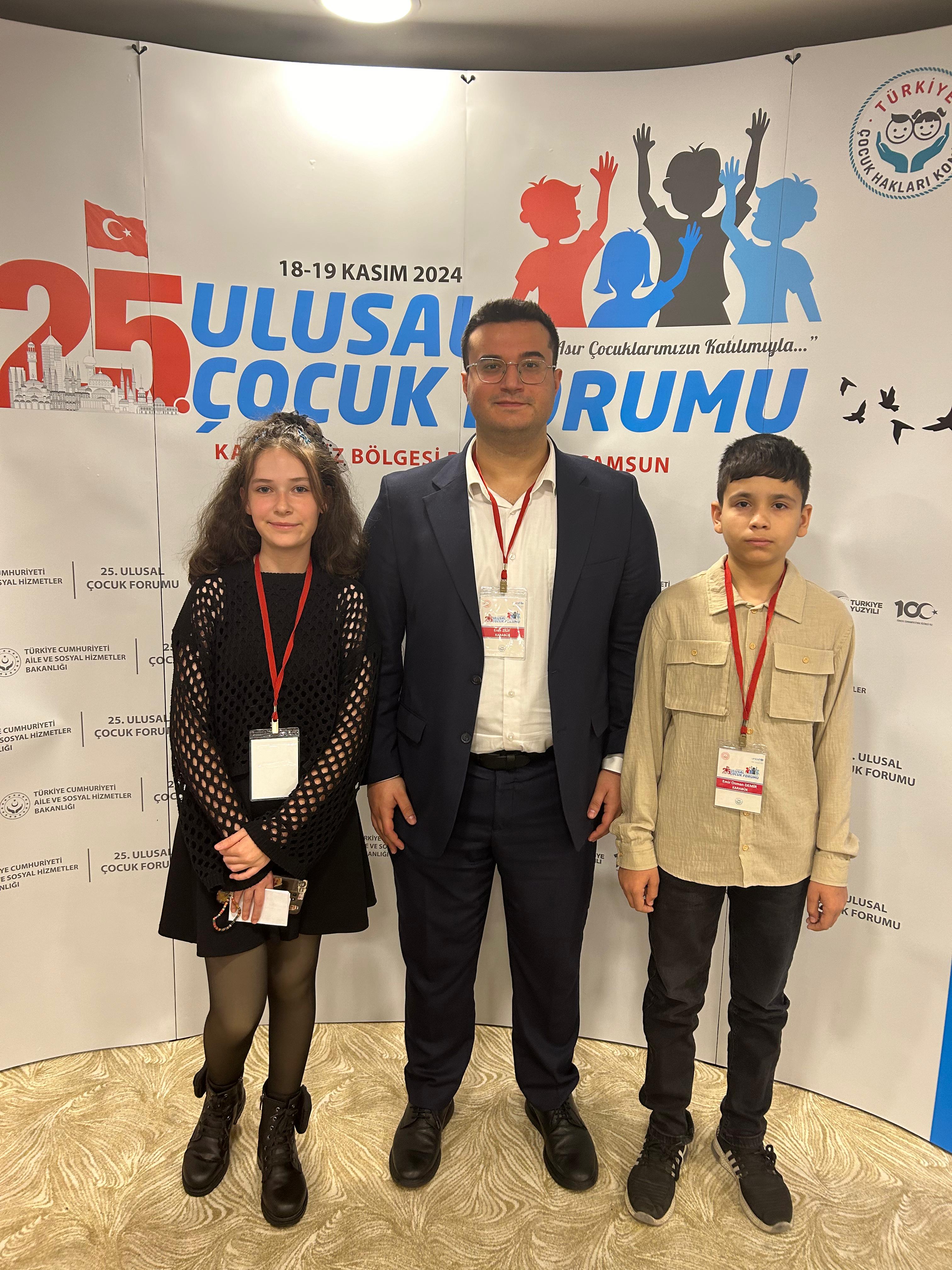 Karabük Çocuk Hakları İl Komitesi, 25. Ulusal Çocuk Forumu Buluşmalarına aktif bir şekilde katılım sağladı. Komitemizi, çocuk temsilcilerimiz Belinay ÖZBAY ve Emir Osman DEMİR ile yetişkin temsilcimiz Psikolog Eren ZİLİF başarıyla temsil etti.