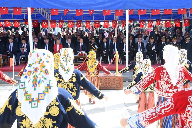 ayyip Erdoğan’ın mesajı okundu. Sayın Valimizin konuşması sonrası, öğrencilerin şiirleri, halk oyunları, spor gösterileri ve müzik dinletisi yer aldı. Komando Eğitim Merkezi’nin dövüş sanatları gösterisi ve gösteri birliği’nin performansı büyük beğeni topladı. Program, bando eşliğinde yapılan tören geçişiyle sona erdi.