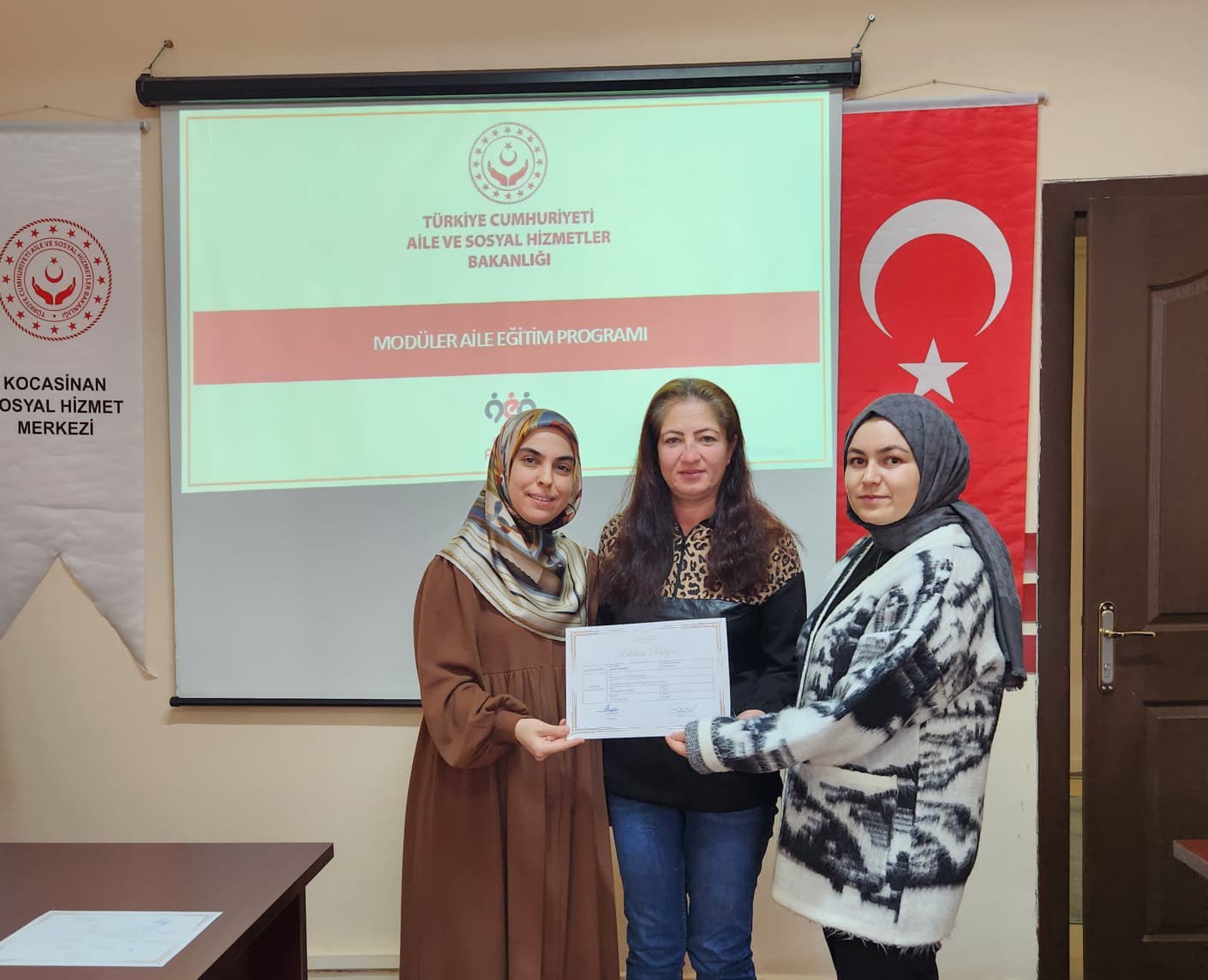 İl Müdürlüğümüze bağlı Kocasinan Sosyal Hizmet Merkezi Müdürlüğünde, Modüler Aile Eğitim Programı kapsamındaki ikinci grup eğitimleri başarıyla tamamlandı. 9 hafta boyunca süren programa katılan, katılımcılara katılım belgesi takdim edildi