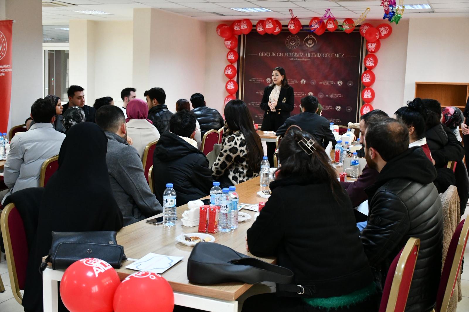 Aile ve Nüfus On Yılı kapsamında, Evlenecek Gençlerin Desteklenmesi Projesi çerçevesinde Aile ve Gençlik Fonundan yararlanan çiftlerimizin katılımıyla Aile Buluşmaları programı gerçekleştirildi.