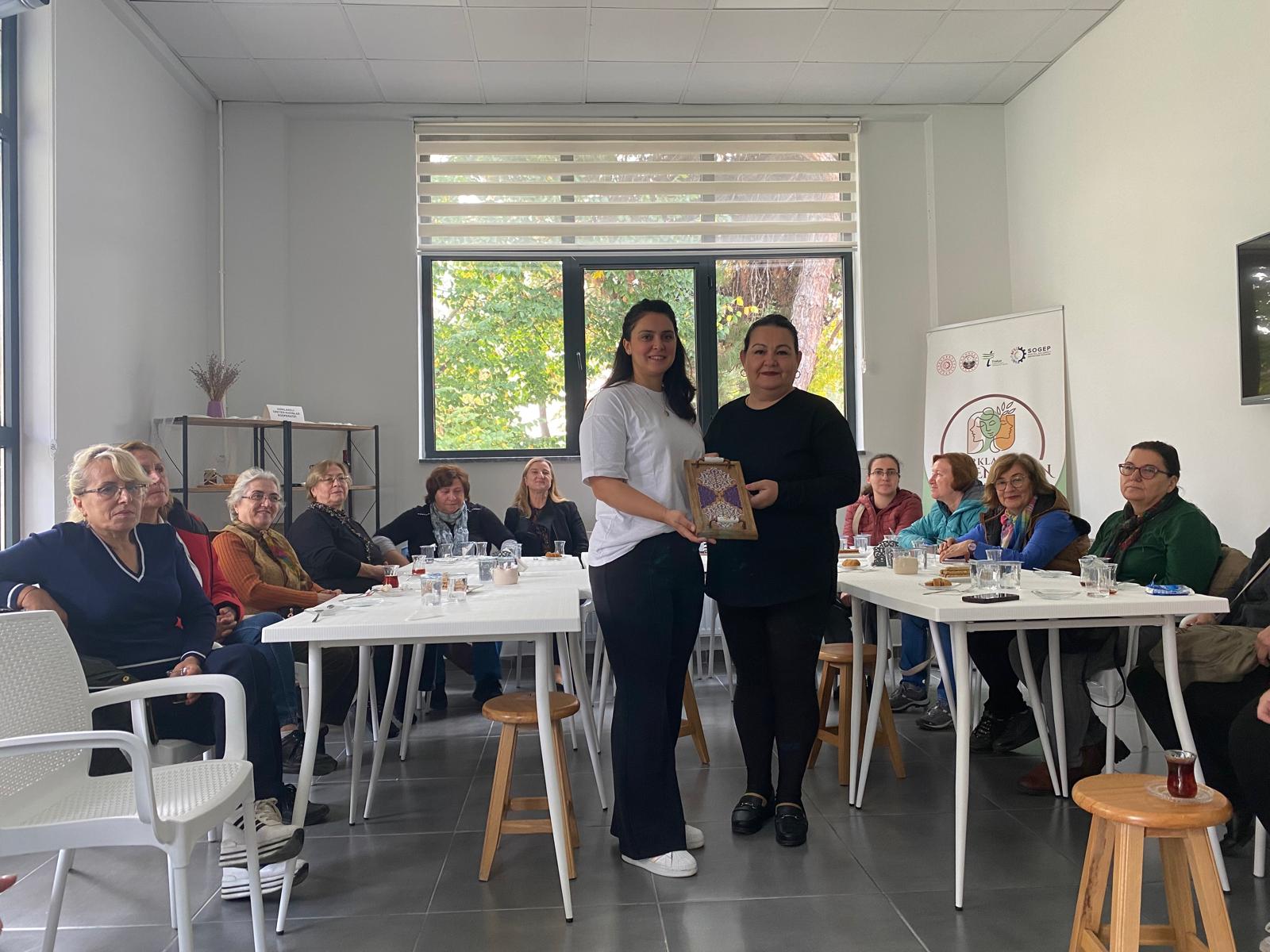 Etkinlik sonunda konuk kooperatif üyeleri, misafirperverliklerinden dolayı Kırklareli Üreten Kadın Kooperatifi üyelerine teşekkür ederek hediye takdiminde bulundular.