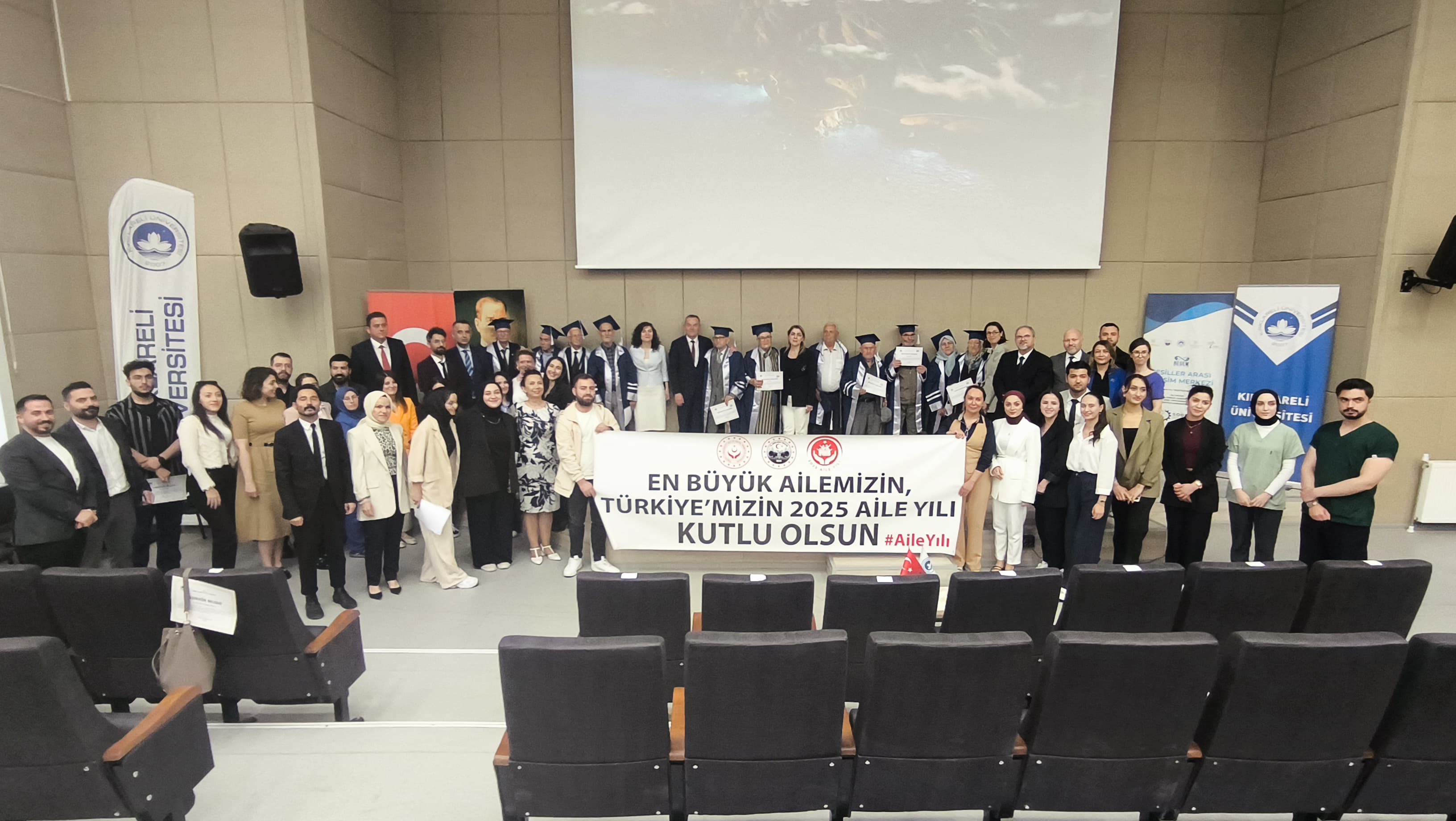 19 Şubat 2025 tarihinde başlayan eğitim süreci, eğitmenlerin desteği, değerli büyüklerimiz ve gönüllü genç üniversite öğrencilerimizin gayretiyle başarıyla tamamlandı. Eğitimin sonunda, 21 Mayıs 2025 tarihinde Kırklareli Üniversitesi Konferans Salonu’nda düzenlenen törenle değerli büyüklerimizin mezuniyet belgeleri; Kırklareli Vali Yardımcısı Elif Canan TUNCER, Kırklareli Üniversitesi Rektörü Prof. Dr. Rengin AK ve Aile ve Sosyal Hizmetler İl Müdürü Bilgin ÖZBAŞ tarafından takdim edildi.