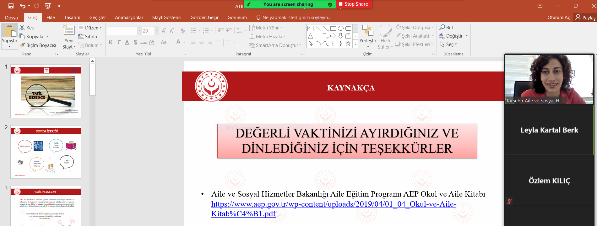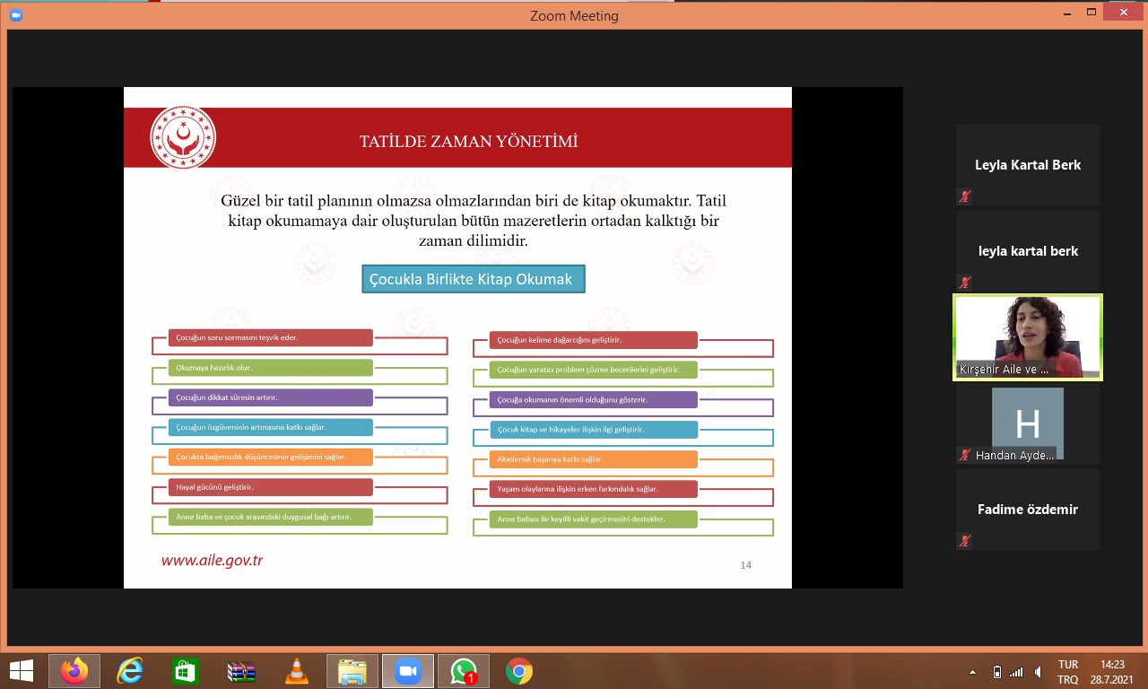 Kırşehir İl Müftülüğü bünyesinde yürütülen Pandemi Sürecinde Aile Eğitimleri kapsamında İl Müftülüğü Aile ve Dini Rehberlik Bürosu ile ortaklaşa olarak 28.07.2021 tarihinde Bakanlığımız Aile Eğitim Programı (AEP) Okul ve Aile modülü içeriğinde çevrimiçi eğitim gerçekleştirilmiştir.