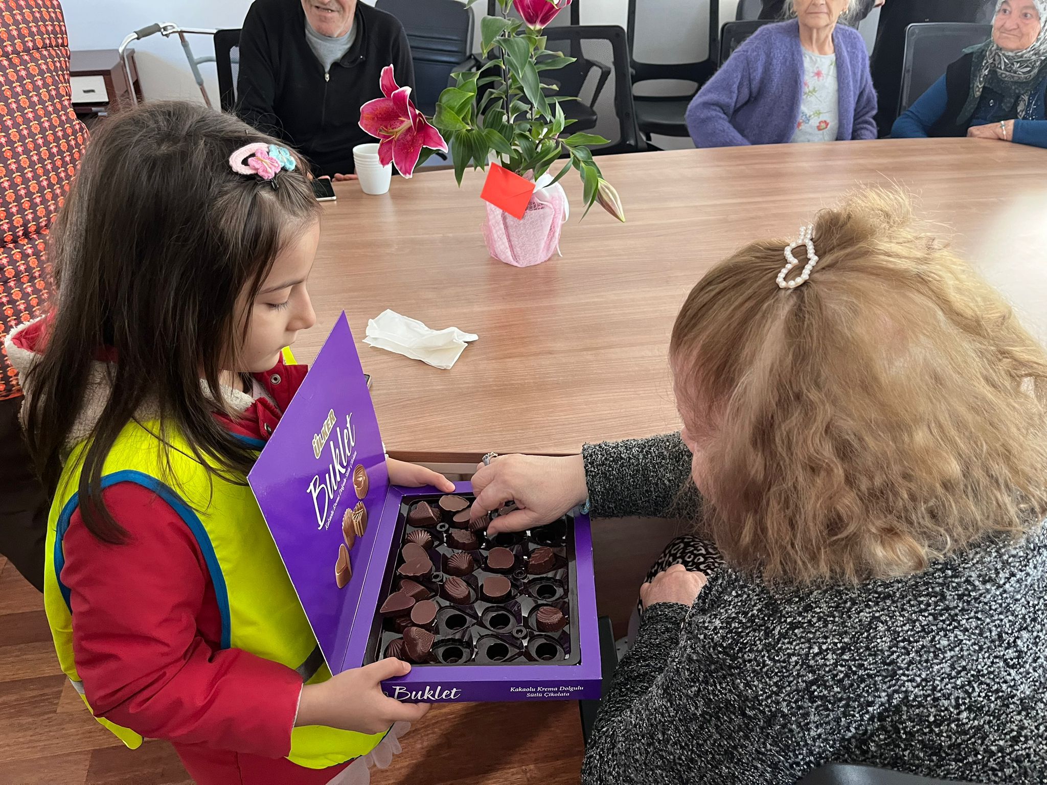 Anaokulundan ziyarete gelen miniklerimiz, büyüklerimiz için hazırladıkları gösterilerini sundu. Ardından çiçek ve çikolata ikramlarıyla yaşlılarımıza hoş anılar bırakan sıcacık bir buluşma gerçekleşti.