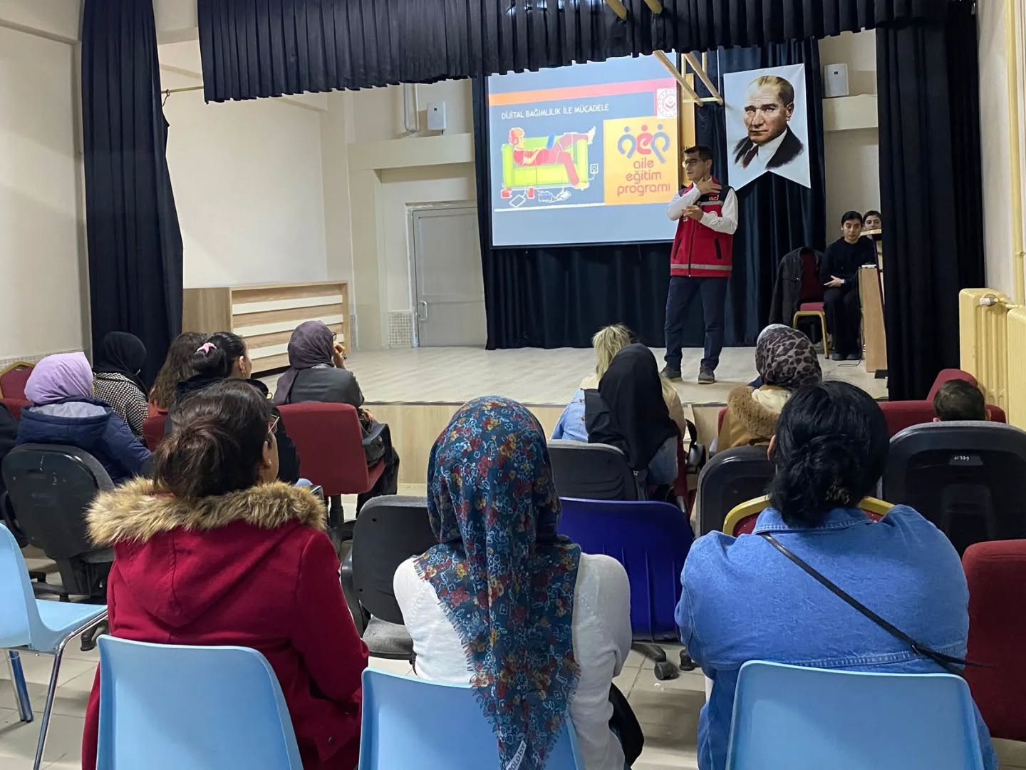 Eğitim kapsamında velilerimize dijital bağımlılığın belirtileri, güvenli internet kullanımı ve çocuklarla sağlıklı dijital iletişim kurma yöntemleri hakkında önemli bilgiler aktarıldı.