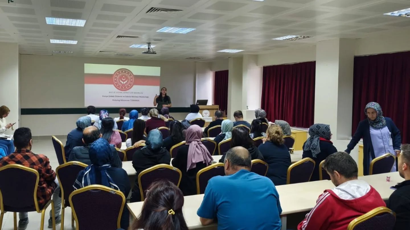 Şiddet Önleme ve İzleme Merkezi Müdürlüğü tarafından Konya Özel Büyükşehir Hastanesi ile Beyhekim Eğitim ve Araştırma Hastanesinin AMATEM, ÇİM ve Psikiyatri servislerinde görev yapan personele yönelik bilgilendirme semineri düzenlenmiş, programda Kadına Yönelik Şiddetle Mücadele ve 6284 Sayılı Kanunun sağladığı koruyucu-önleyici tedbirler aktarılmış, seminerde sağlık çalışanlarının şiddet vakalarını doğru değerlendirme, ilgili kurumlara yönlendirme ve acil müdahale süreçlerine katkı sağlama sorumlulukları vurgulanmıştır.