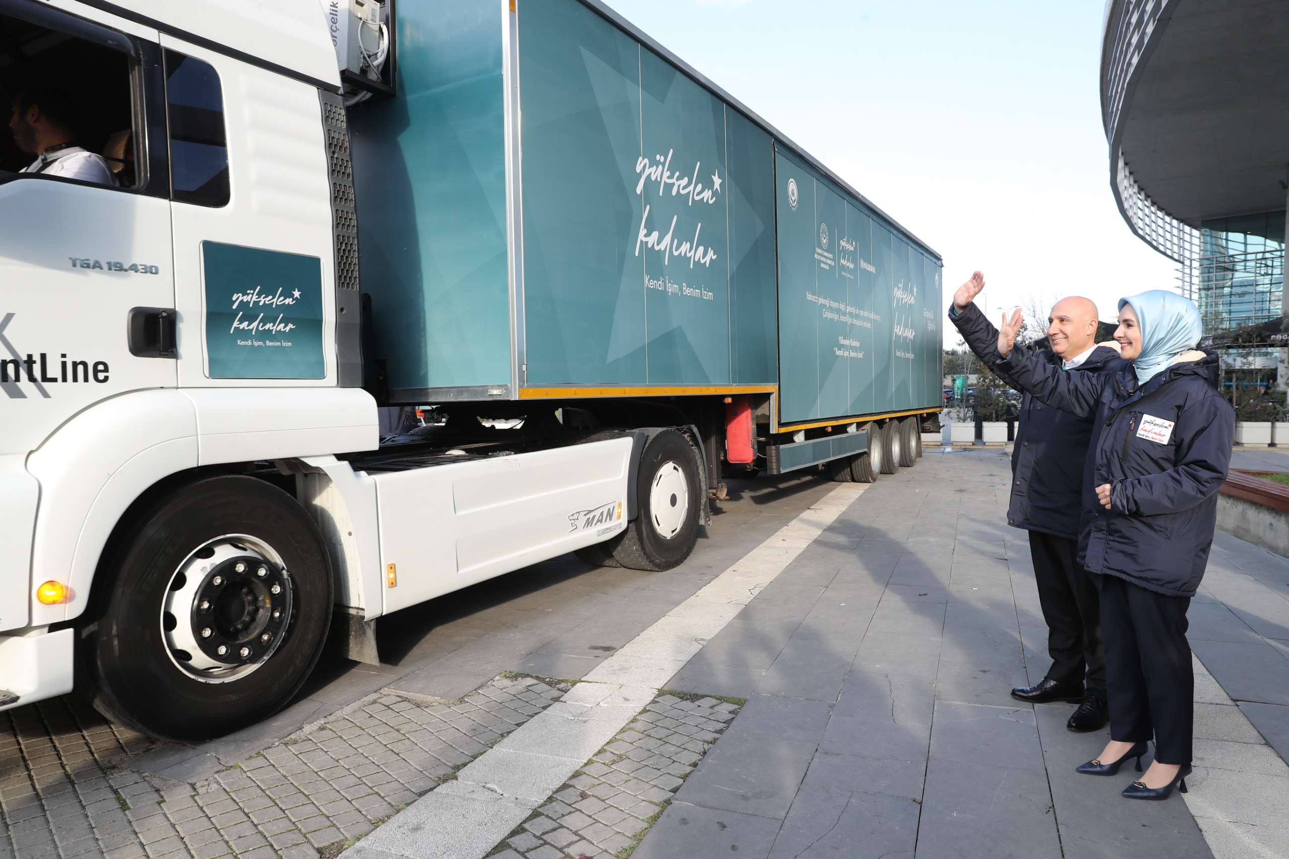 Törenin ardından Bakan Göktaş, eğitim tırının direksiyonunun başına geçti. Bu sembolik başlangıcın ardından Bakan Göktaş ve Halkbank Genel Müdürü Arslan kadınlara destek verecek olan tırı bakanlık bahçesinden Karadeniz'e uğurladı.