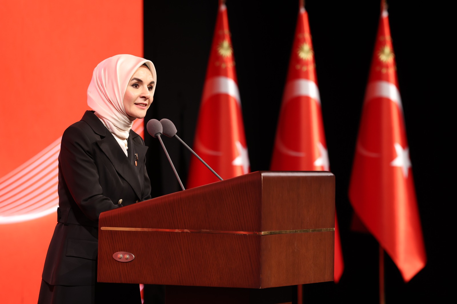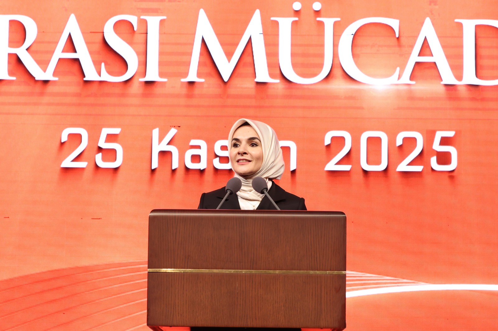 "Bu vesileyle, şiddetin en zalimine maruz kalan ve bu özel günde bizlerle olan Gazzeli kadınları, tüm Filistinli kardeşlerimi selamlıyorum. Şiddetin bahanesi yok. Şiddete asla müsamahamız yok. İşte bu nedenle biz, şiddetle mücadelemizi kararlılıkla sürdürmeye devam edeceğiz. Bizlere her zaman destek olan Sayın Cumhurbaşkanımıza ve saygıdeğer Hanımefendiye şükranlarımı sunuyorum. 5. Eylem Planımızın hazırlanmasında emeği geçen tüm paydaşlarımıza ve çalışma arkadaşlarıma teşekkür ediyorum."
