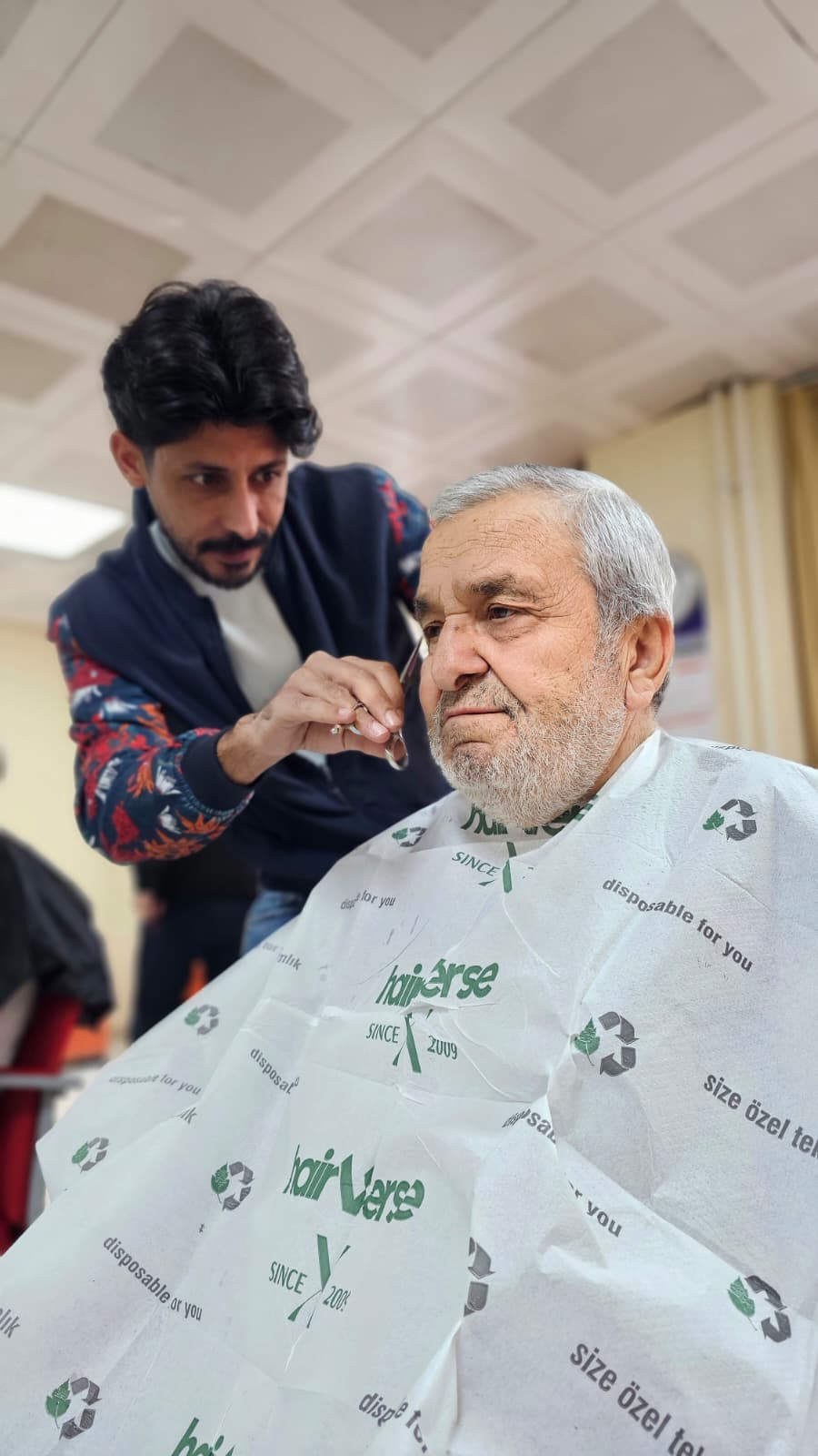 Müdürlüğümüze bağlı Huzurevi Yaşlı Bakım ve Rehabilitasyon Merkezini ziyaret eden hayırsever kuaförler, huzurevi sakinlerimizin saç bakımlarını gerçekleştirerek onlara keyifli anlar yaşattılar.