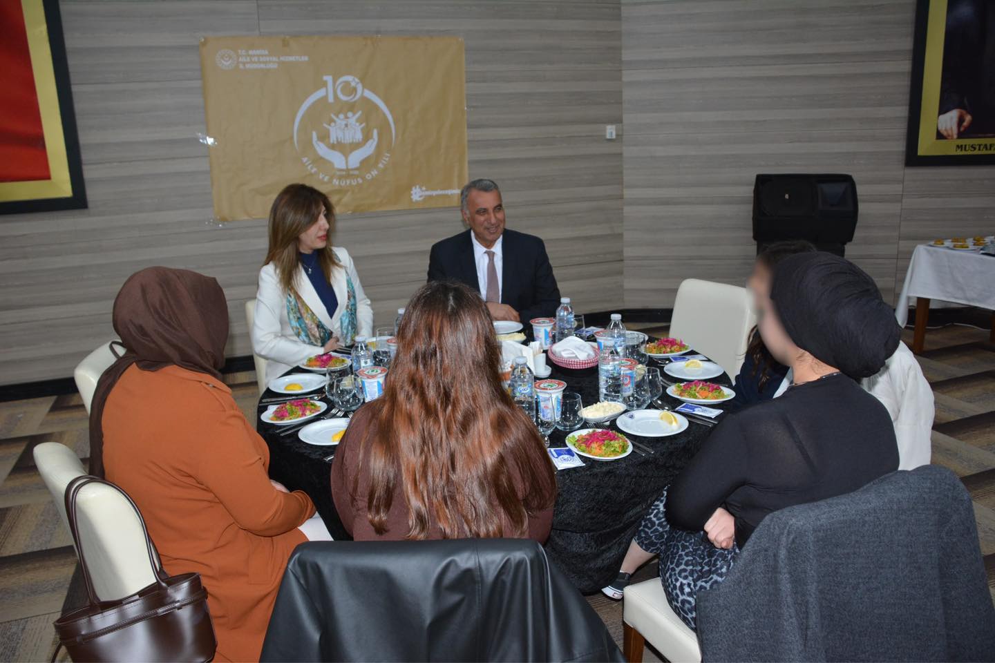 8 Mart Dünya Kadınlar Günü vesilesiyle düzenlenen programa; Manisa Vali Yardımcısı Sayın Mustafa Harputlu, İl Müdürümüz Kuduret Gültaş, İl Emniyet Müdürü Sayın Fahri Aktaş ve değerli eşi Sayın Nuray Aktaş, İŞKUR İl Müdürü Sayın Günseli Tufan, Sosyal Güvenlik Kurumu İl Müdürü Sayın Buket İnce, İl SYDV Müdürü Sayın Senem Savcı Helvacı, Manisa Büyükşehir Belediye Başkanı’nın değerli eşi Sayın Özge Dutlulu, Yunusemre Belediye Başkanı’nın değerli eşi Sayın Serap Balaban, İl Müftü Yardımcısı Sayın Resul İncelik ve değerli eşi, KADEM İl Temsilcisi Sayın Özlem Akar İşleyen ve değerli KADEM üyeleri, Manisa Barosu mensubu Sayın Avukat Zehra Oyit ve Sayın Avukat Kader Terut katılım sağladı.