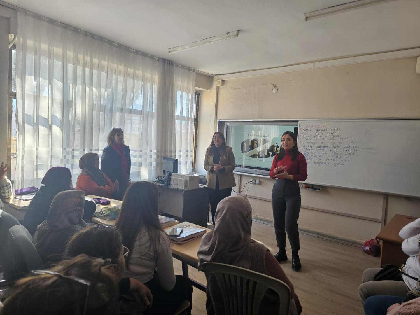 Salihli Sosyal Hizmet Merkezimizde görevli Psikolog Tuğba KARAYEL tarafından, Salihli Şehit Ahmet Özsoy Halk Eğitim Merkezi Müdürlüğü bünyesinde eğitim alan Kadın Elbise Dikimi ve I. Kademe Okuma Yazma Eğitim Programı kursiyerlerine yönelik “Aile İçi İletişimin Temel Unsurları” konulu eğitim gerçekleştirildi.
