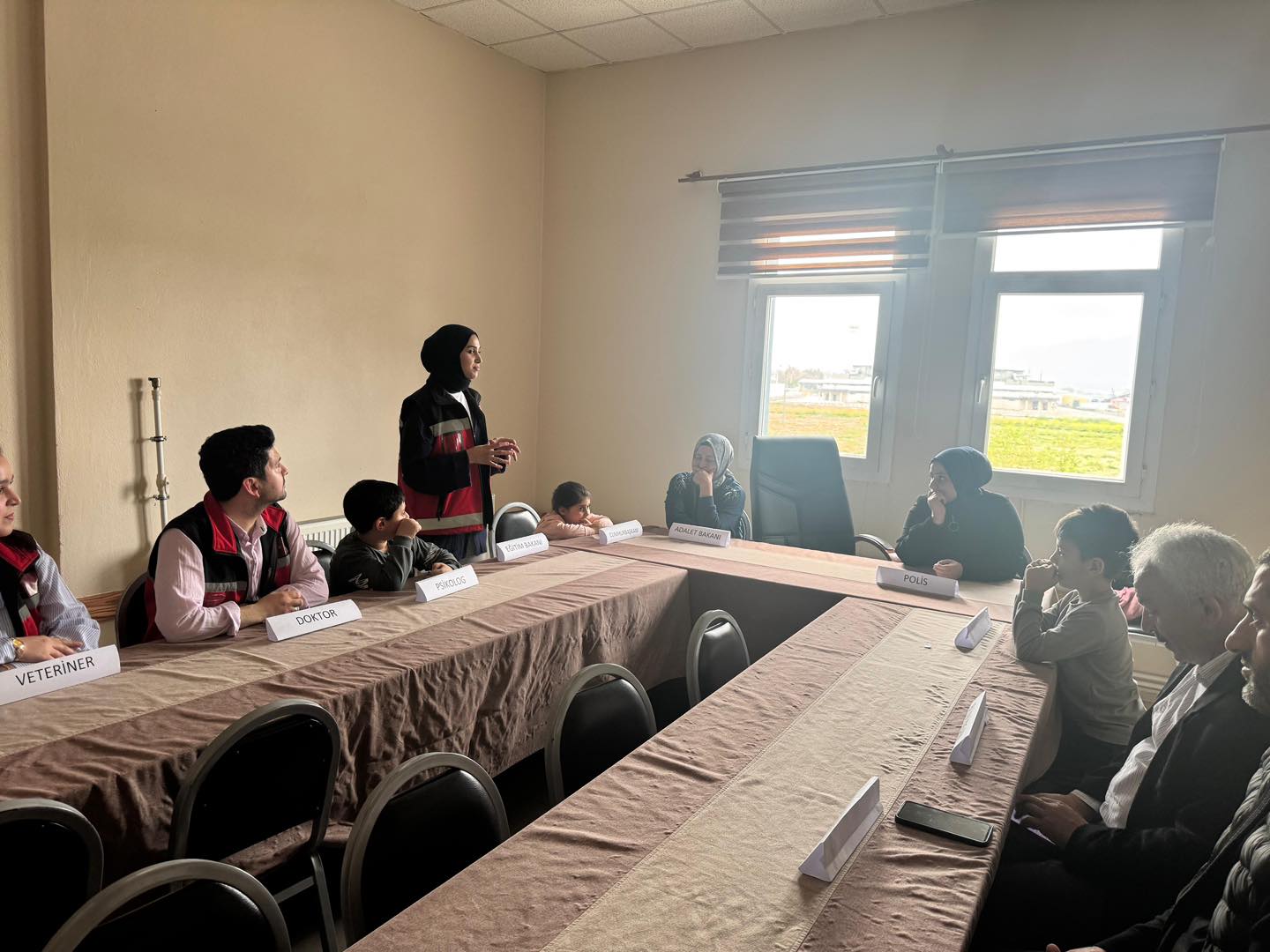 Etkinlikte, çocuklarımız ve ailelerimizin ortak katılımıyla tanışma oyunları oynandı. Devletimizin önemli konumlarında yer alan meslek gruplarına ait temsili görevler çocuklarımız ve ailelerimize devredildi.