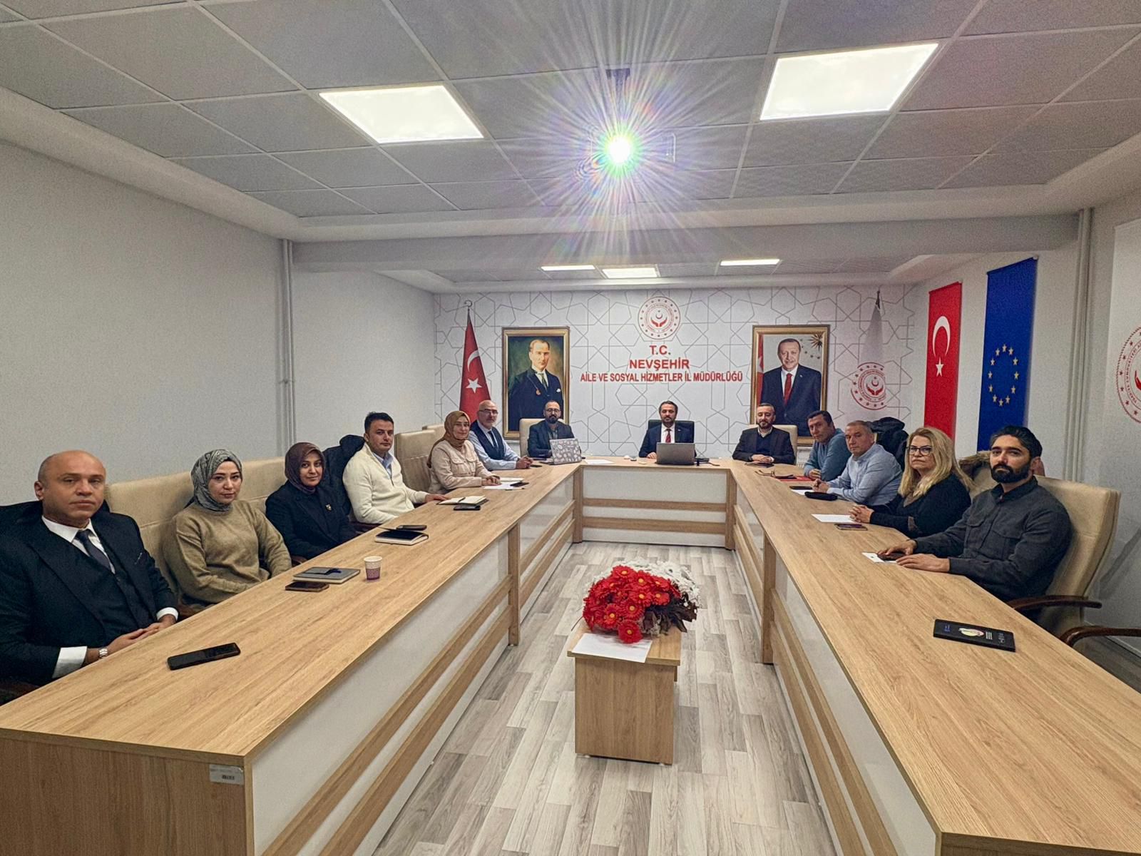 Nevşehir Aile ve Sosyal Hizmetler İl Müdürümüz Mahmut Selçuk başkanlığında, kuruluş müdürlerinin katılımıyla istişare toplantısı gerçekleştirilmiştir
