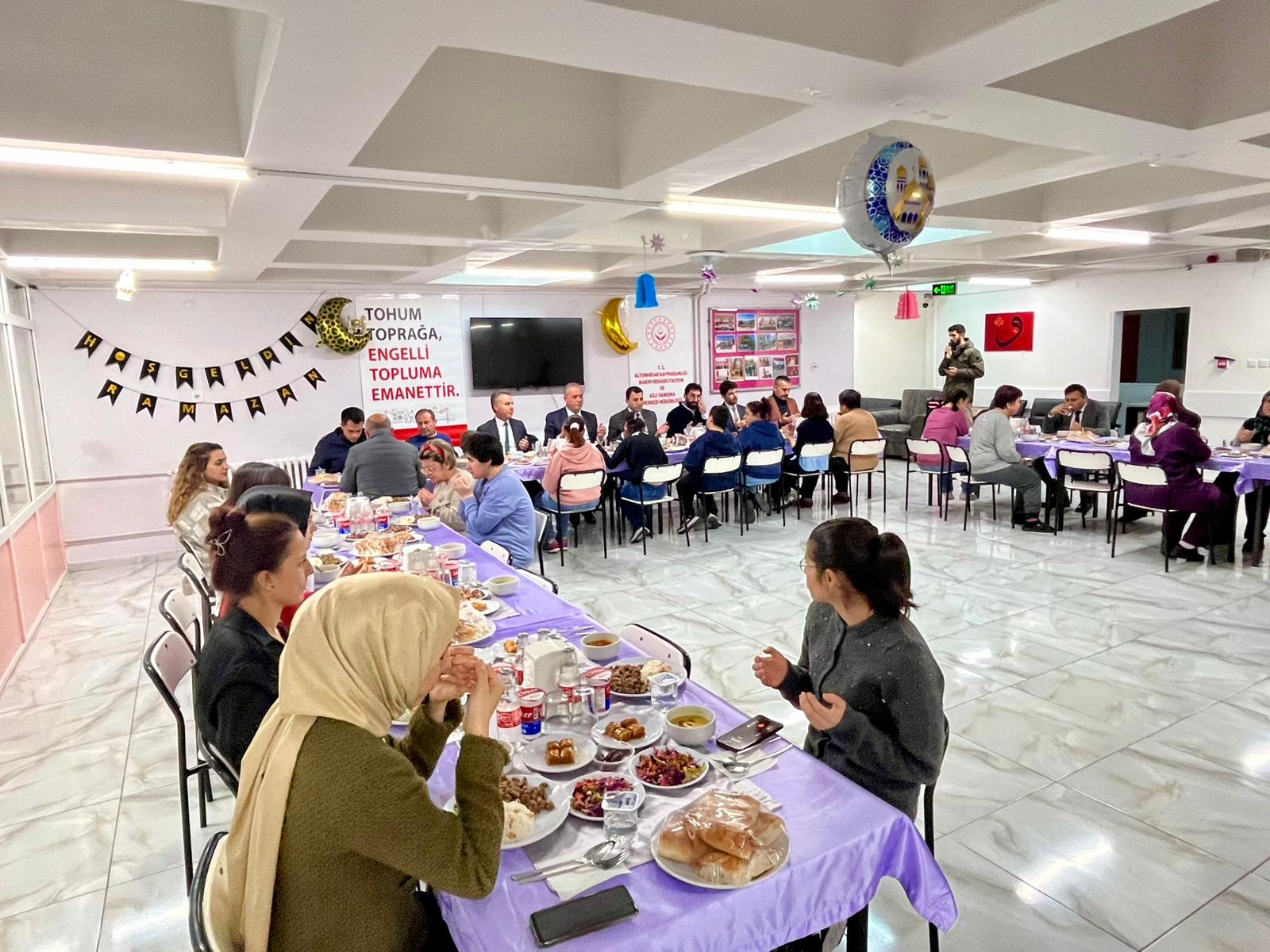 Bugün iftar sofrasında özel bireylerimizle bir araya geldik. İftar programına Altunhisar Belediye Başkanı Sayın Neşet Doygun, İl Müdürümüz Sayın Nurettin Kesler,İl Müdür Yardımcımız Selçuk Hüseyin Demirtaş ve ilçe protokolü katılım sağladılar.