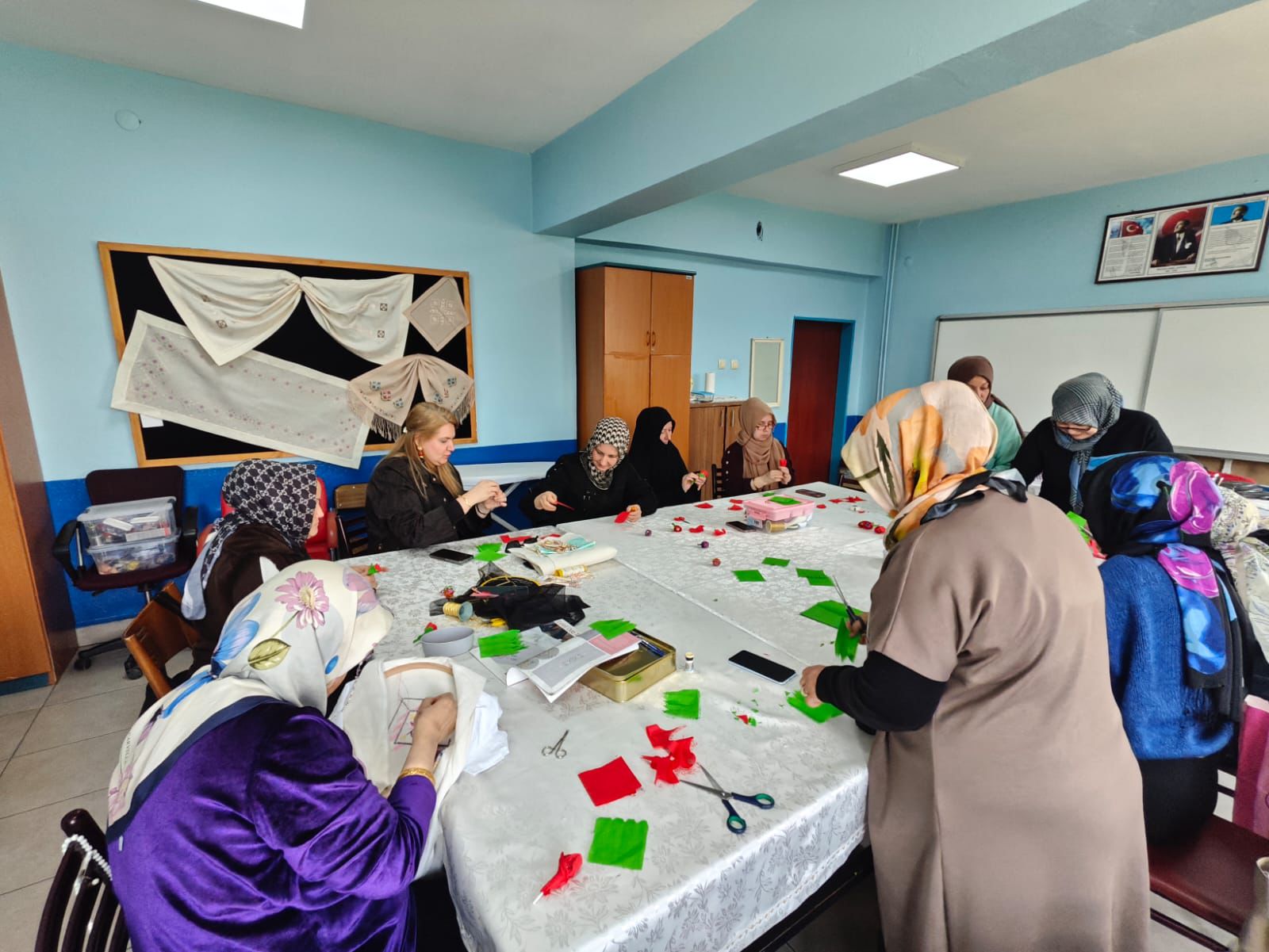 İl Müdürlüğümüze bağlı Geyve Sosyal Hizmet Merkezi tarafından 8 Mart Dünya Kadınlar Günü kapsamında anlamlı bir eğitim ve atölye çalışması gerçekleştirildi. Kursiyerlere günün önemi hakkında kısa bir bilgilendirme yapıldıktan sonra kadın kursiyerlerimiz kese dikimi yaptı, çocuklar ise keseleri kurdelelerle süsledi.
