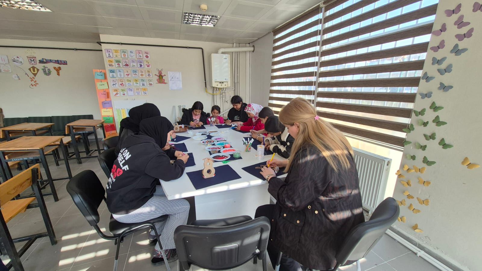 Etkinlikte ayrıca 8 şeklinde kesilmiş kartonlar üzerine çizim, boyama ve boncuk çalışmaları gerçekleştirildi. Çocuklar hazırladıkları çalışmaları annelerine hediye ederek Kadınlar Günü’nü kutladı.