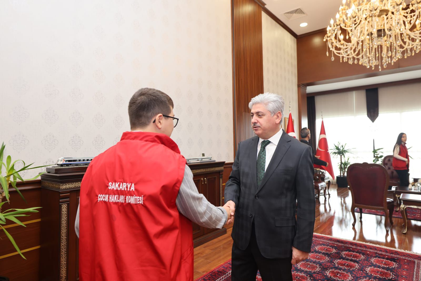 Sayın Valimiz Rahmi Doğan, Çocuk Hakları Komitesi üyesi çocuklarımızı makamında misafir ederek yürütülen çocuk hakları çalışmaları hakkında bilgi aldı. Valimiz, çocuk hakları ve farkındalık faaliyetlerinin toplumsal önemine dikkat çekerek bu alandaki çalışmaların kararlılıkla sürdürülmesinin gerekliliğini vurguladı.