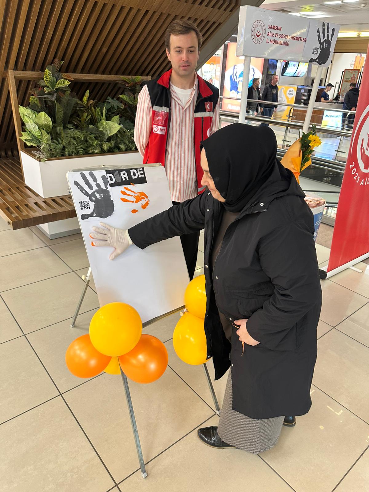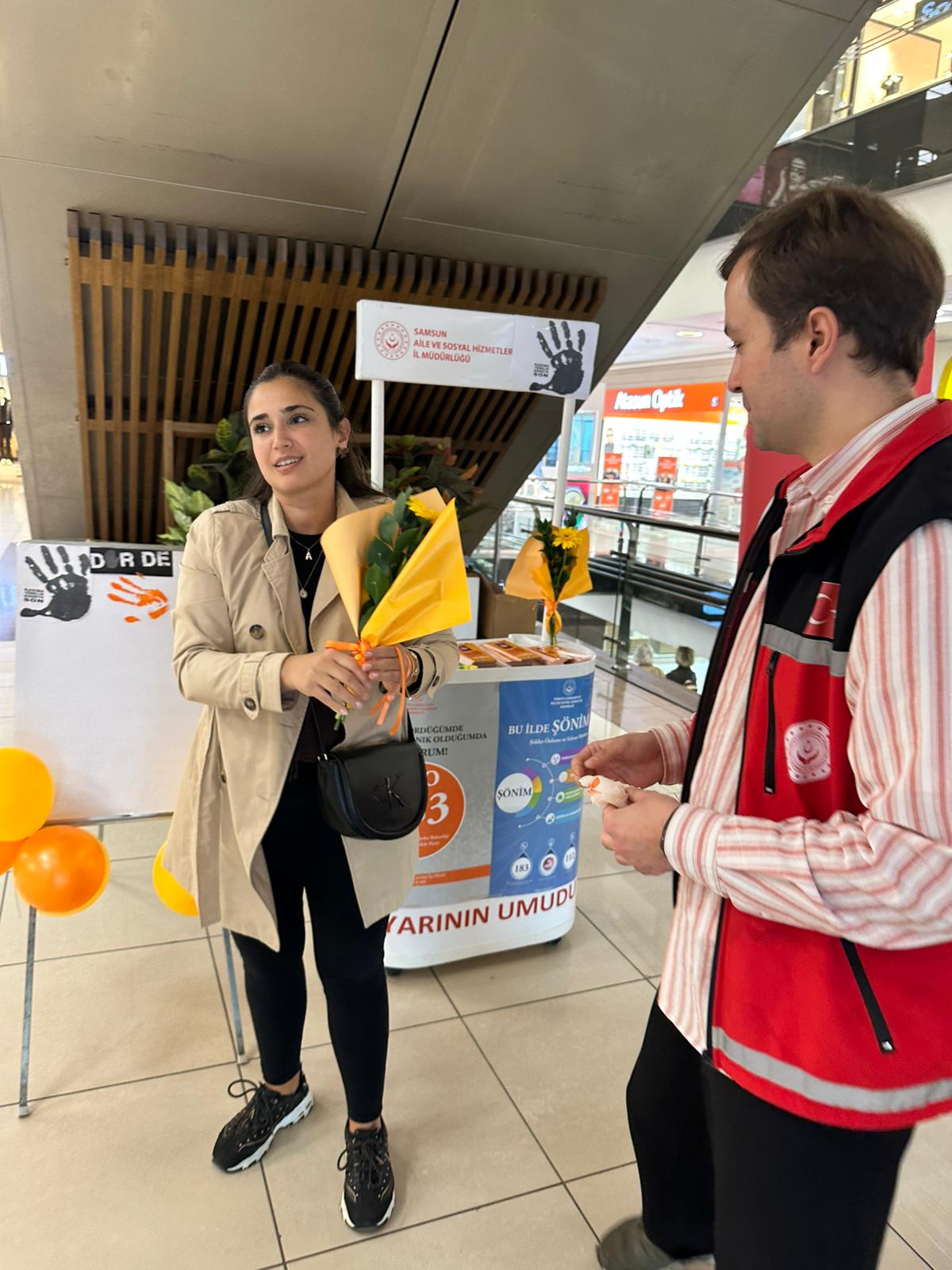 - Atakum Sosyal Hizmet Merkezi, Yeşilyurt AVM’de “Turuncuya Boya – Şiddete Sen de Dur De” temalı farkındalık standı kurdu. Katılımcılar, turuncu simgelerle kadına yönelik şiddete karşı destek verdi.