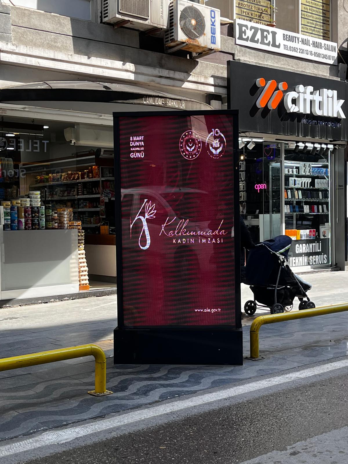 8 Mart Dünya Kadınlar Günü kapsamında Samsun genelinde farkındalık oluşturmak amacıyla çeşitli etkinlikler gerçekleştirildi. Bu kapsamda hazırlanan afişler şehrin farklı noktalarında yer alırken, Samsun Büyükşehir Belediyesine ait led ekranlarda da 8 Mart Dünya Kadınlar Günü’ne yönelik mesajların yer aldığı görseller yayınlandı.