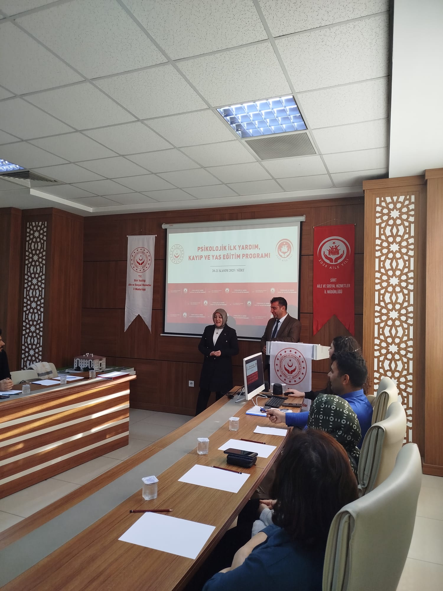 Bakanlığımız Şehit Yakınları ve Gaziler Genel Müdürlüğü tarafından hazırlanan “Psikolojik İlk Yardım, Kayıp ve Yas” konulu eğitim programı; İl Müdürlüğümüz ve bağlı kuruluşlarımızda görev yapan personellerin katılımıyla, Bakanlığımız eğiticileri Sn. Canan Sitti ve Sn. Fatma Koçbulut Maviş tarafından 20-21 Kasım tarihlerinde, 10.00–17.00 saatleri arasında İl Müdürlüğümüz toplantı salonunda gerçekleştirilmiştir.