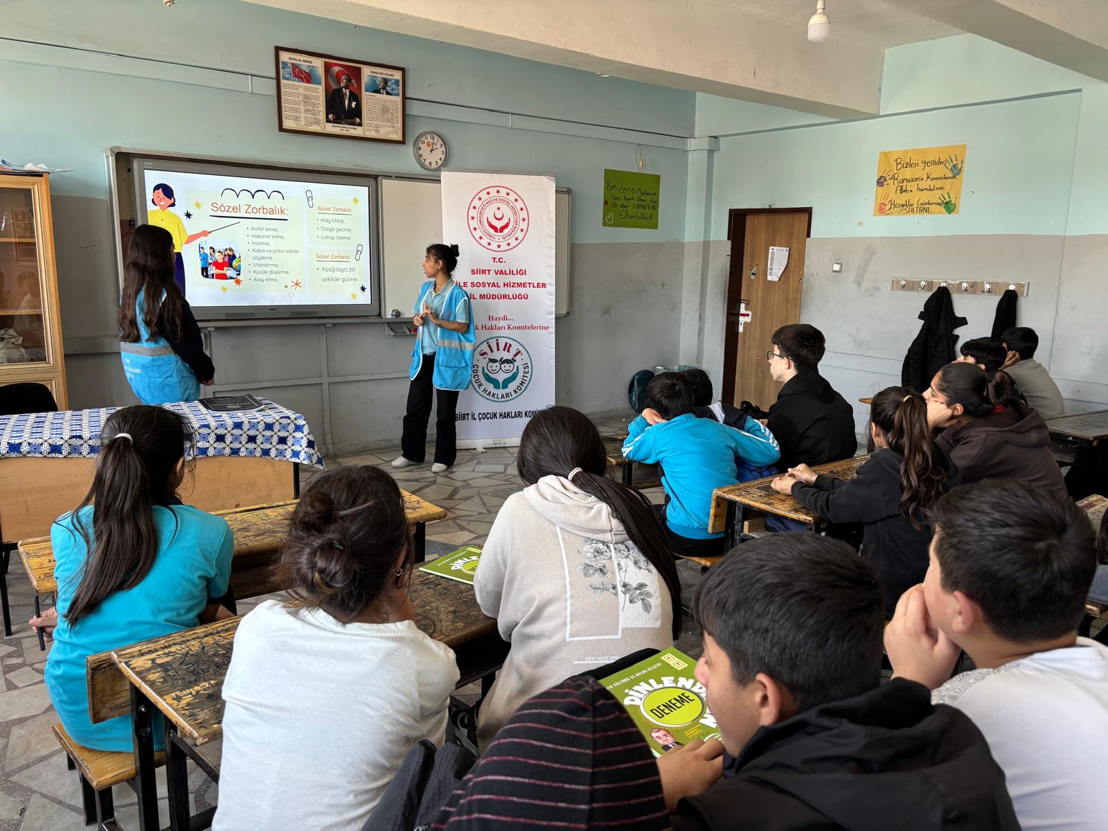 Siirt Çocuk Hakları Komitemiz tarafından, çocuk haklarının tanıtımı ve akran zorbalığına yönelik farkındalık oluşturulması amacıyla, Siirt 75. Yıl Ortaokulu öğrencilerine “akrandan akrana eğitim” gerçekleştirilmiştir.