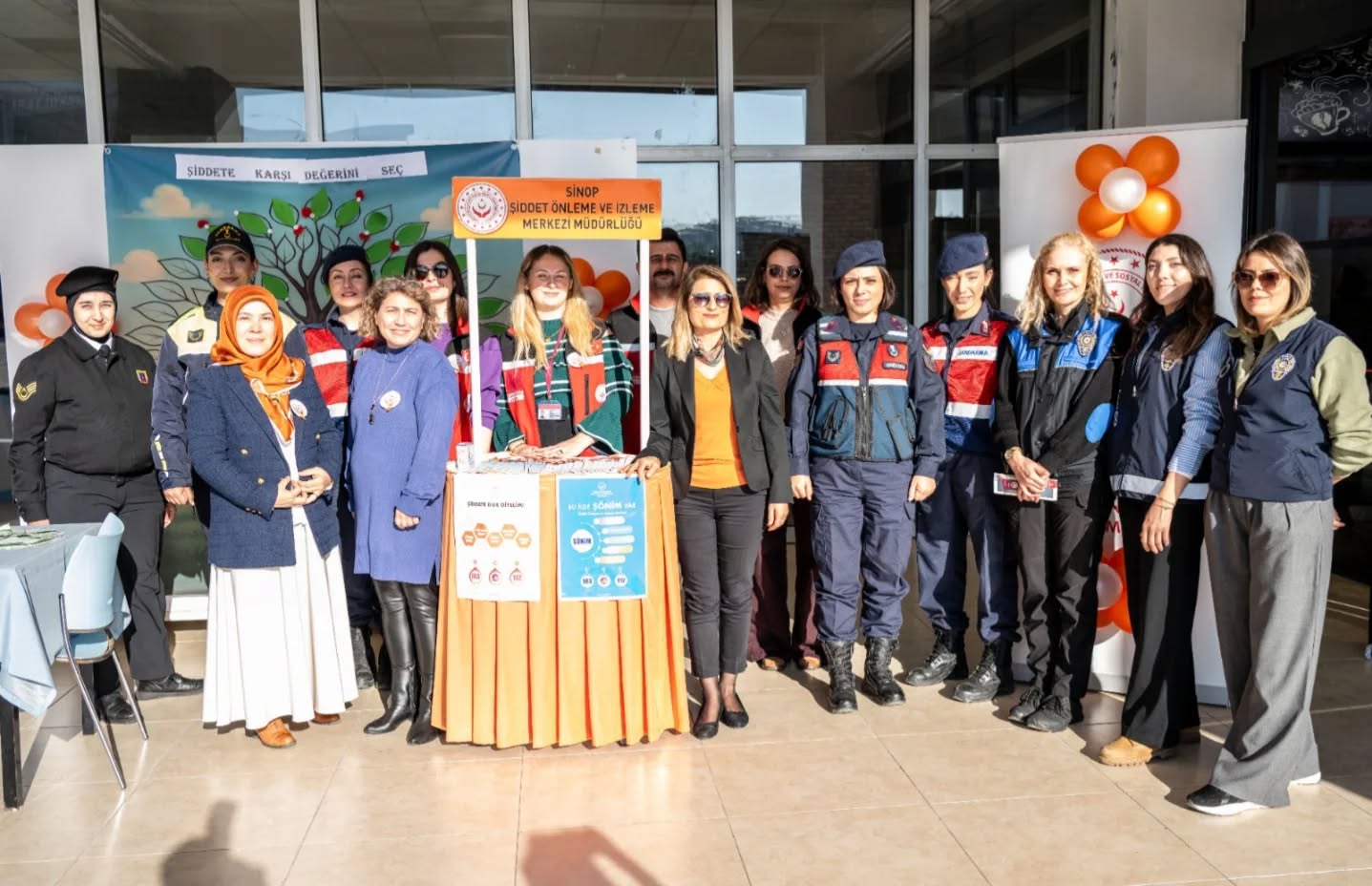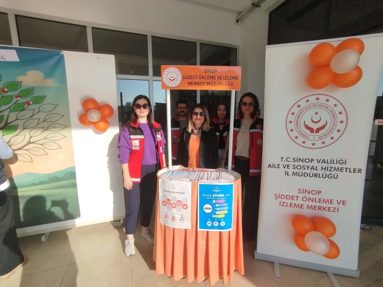 Şiddet Önleme ve İzleme Merkezimiz, Sinop İl Jandarma Komutanlığı, Sinop İl Emniyet Müdürlüğü ve Sinop Üniversitesi Kadın Çalışmaları Uygulama ve Araştırma Merkezi (SİNKAMER) iş birliğiyle, Sinop Üniversitesi Öğrenci Yaşam Merkezi’nde “Turuncu Masa” mottosuyla bir stant kuruldu.