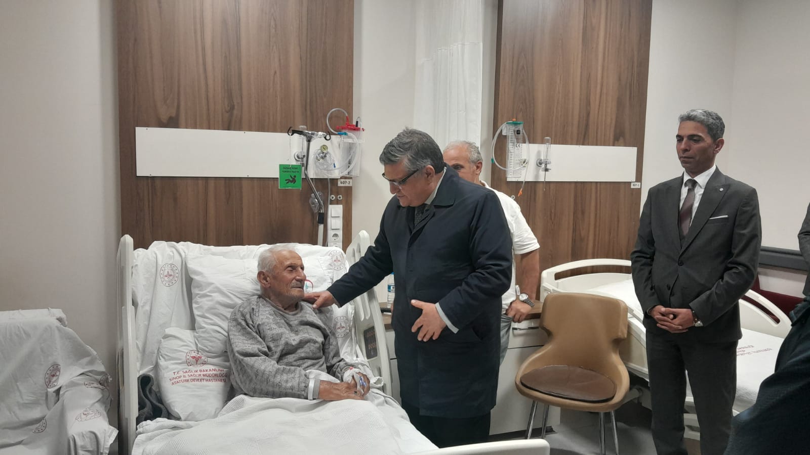 Valimiz Sayın Dr. Mustafa Özarslan, İl Müdürümüz Can Kayhan Özok ile birlikte Atatürk Devlet Hastanesi’nde tedavisi devam eden şehidimiz Halil Özdoğru’nun babası Osman Özdoğru’yu ziyaret etti.
