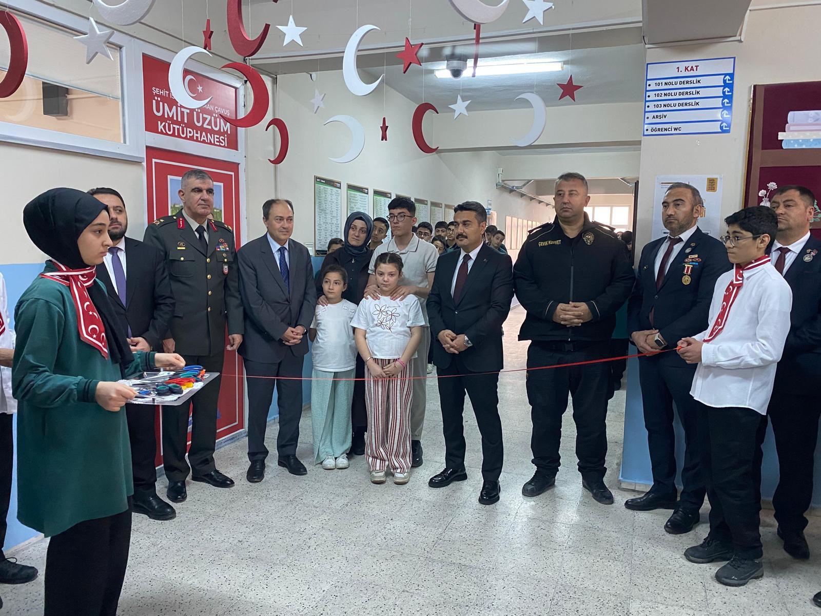 Şehidimiz İstihkâm Uzman Çavuş Ümit Üzüm’ün aziz hatırasına ithafen, Kadıburhaneddin İmam Hatip Ortaokulu’nda oluşturulan kütüphanenin açılış programına; Şube Müdürümüz Fadime Meti ile birlikte Şehit Yakınları ve Gazi Hizmetleri Birimi personelimiz katılım sağlamıştır.