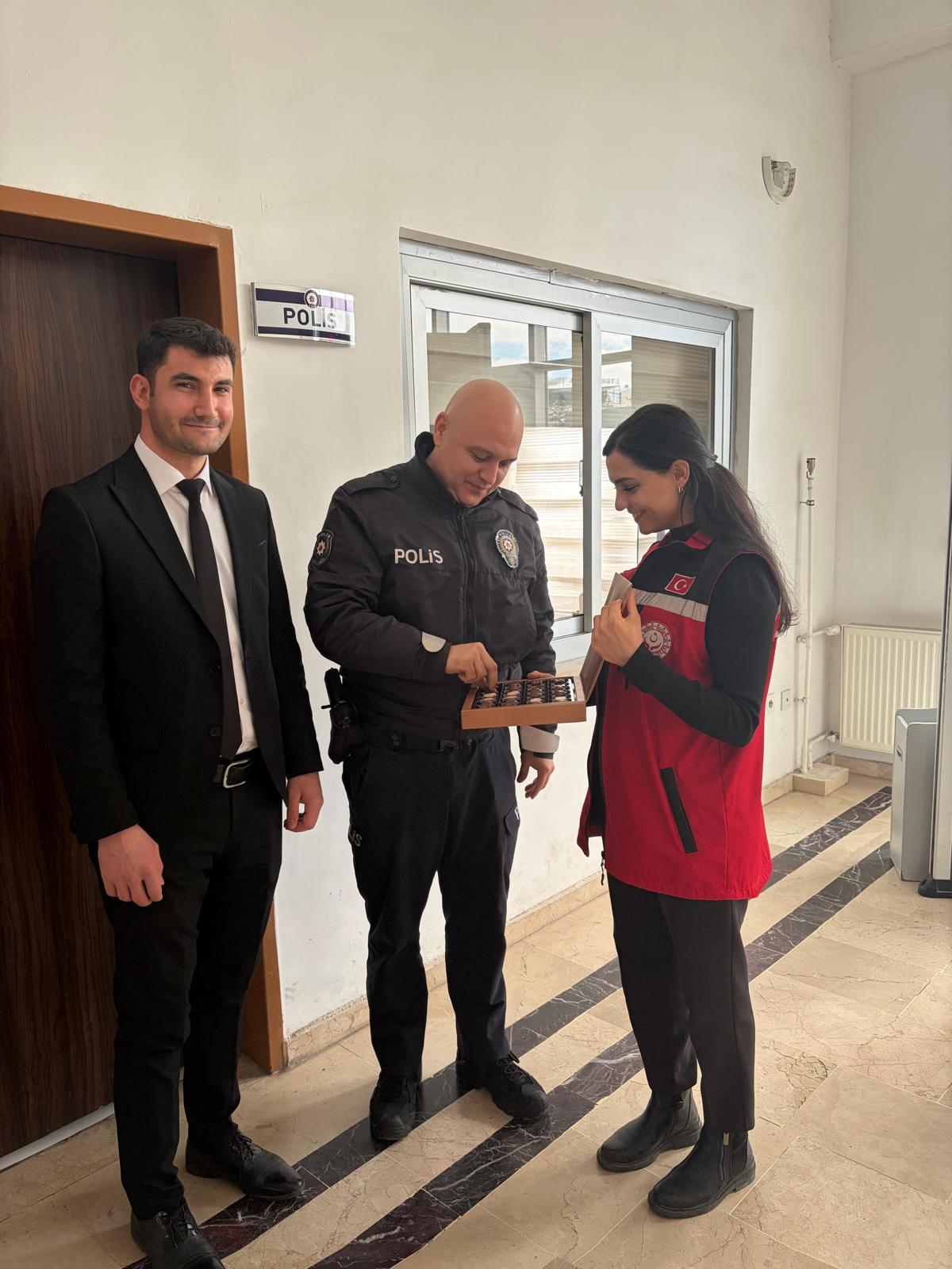 Ziyaret kapsamında emniyet personelleri ile sohbet edilmiş olup, çikolata ikramında bulunulmuştur.