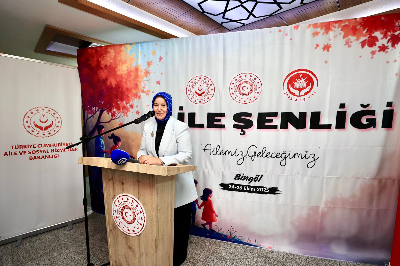 Bingöl’de yedincisi gerçekleştirilen “Aile Şenliği” programında, ailenin korunması, aile bağlarının güçlendirilmesi ve sosyal dayanışmanın artırılması amacıyla çeşitli etkinlikler düzenlendi. Programa Aile ve Sosyal Hizmetler Bakan Yardımcısı Sayın Leman YENİGÜN, Sosyal Yardımlar Genel Müdürü Sayın Dr. Alparslan ÇEVİK ile il protokolü katıldı. Bakan Yardımcısı YENİGÜN, program kapsamında yaptığı konuşmada, aile kurumunun korunması, aile bağlarının güçlendirilmesi ve toplumsal dayanışmanın artırılması yönündeki çalışmaların önemine değindi.