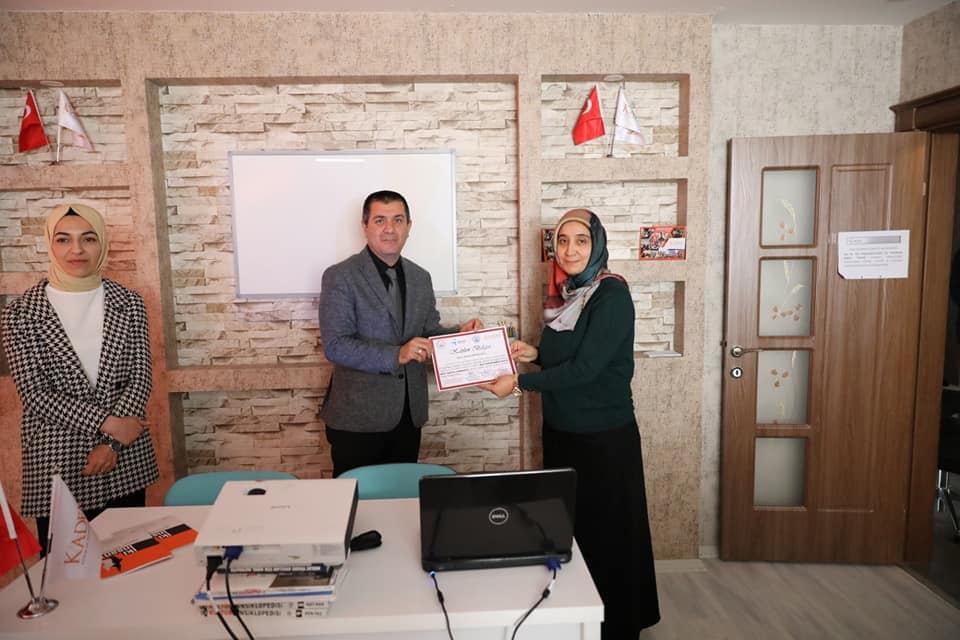 Örgü kursunu tamamlayan kursiyerlere Hanımefendi Meral Bilmez, Aile Çalışma Sosyal Hizmetler il Müdürü Tarık KUŞMAN, Çalışma ve İş kurumu il Müdürü M.Salih SERÇE, İpekyolu Halk Eğitim Merkezi il Müdürü Şahin ARİK, Aile Çalışma ve Sosyal Hizmetler il Müdür Yardımcsi Selma BİÇEK, Eğitmen Şaduman BİNGÖL ve Van KADEM Temsilcisi Gamze BİÇEK BOZDOĞAN tarafından sertifikaları verildi.