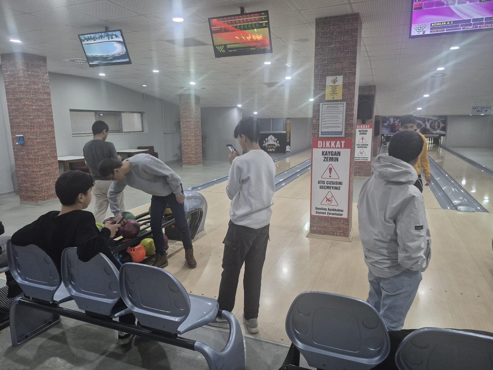 Sonra Hedef Bowling: Eğlence bowling salonunda devam etti! Birlikte atış yapmanın, her devrilen labutta birlikte sevinmenin ve kaliteli zaman paylaşmanın keyfini çıkardılar.