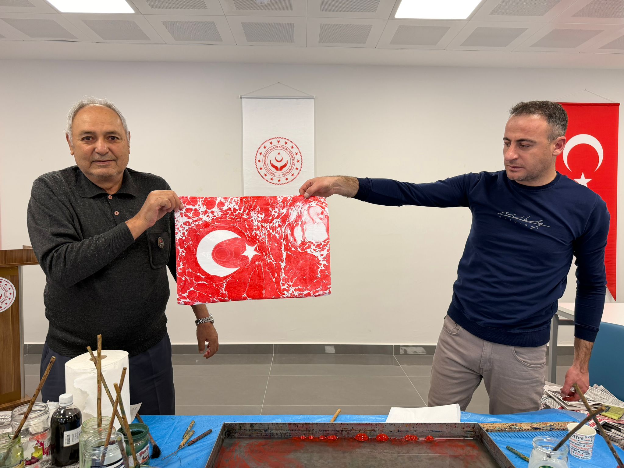 Şehit yakınlarımız, gazilerimiz ve gazi yakınlarımız; suyun üzerine bıraktıkları renklerle sadece sanat yapmadılar, aynı zamanda yaşanmışlıklarını ve duygularını şifalandırdılar. Ebru teknelerinin başında, sabırla ve sevgiyle yaraları sarmaya, sanatın iyileştirici gücüne tutunmaya çalıştık.