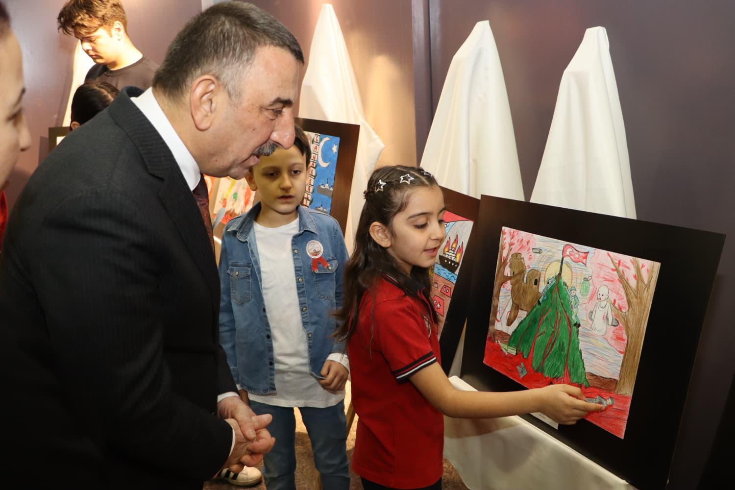 Program kapsamında; İl Milli Eğitim Müdürlüğü tarafından hazırlanan “Bir Destandır Çanakkale” temalı resim, şiir ve kompozisyon yarışmasında dereceye giren öğrencilerin eserlerinden oluşan serginin açılışı gerçekleştirildi.